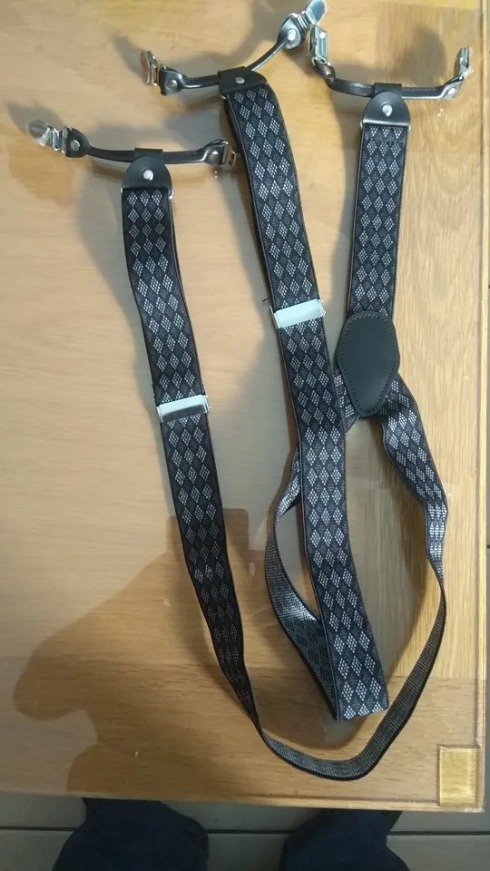 Bretelles en cuir noir, 6 Clips, bretelles, pantalon, décontracté x 3.5 cm, cadeau de père/mari, tendance, hommes Vintage 120