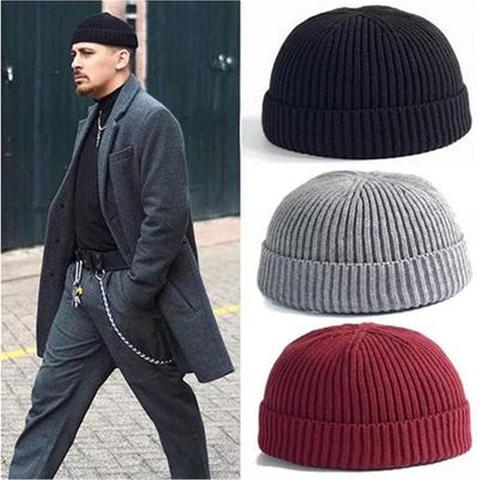 Brimless chapeaux Hip Hop Beanie Skullcap rue tricoté chapeau femmes hommes acrylique unisexe décontracté solide citrouille Portable Melon casquette hiver
