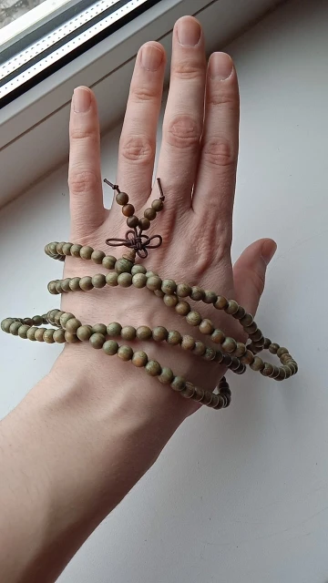 BRO772 naturel vert santal longs Bracelets 6mm bouddhiste 216 perles prière Mala chapelet parfumé Verawod collier