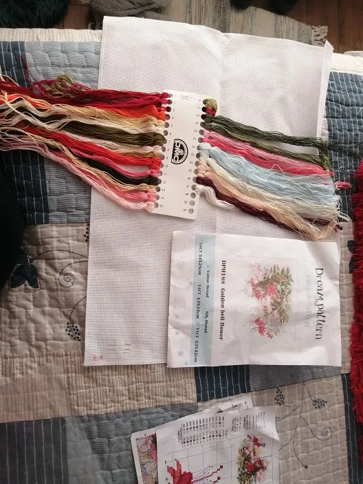 Broderie de tissu en coton blanc, couture à la main travaux manuels, à cloche dorée, fleur, kit de point de croix, broderie, tissu 18ct, 14ct, 11ct, fleur