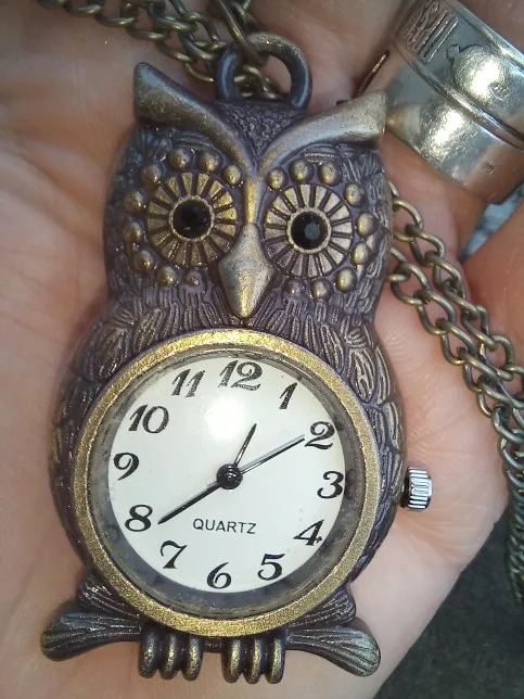 Bronze hibou forme pendentif montre Quartz montre de poche rétro Fob chandail chaîne chiffres arabes affichage collier horloge