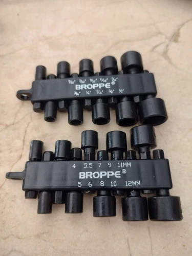BROPPE 10 pièces 1/4 pouces tige hexagonale écrou de puissance tournevis jeu de forets métrique/impérial clé à douille tournevis