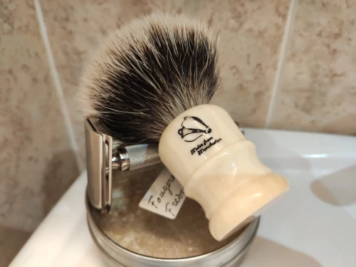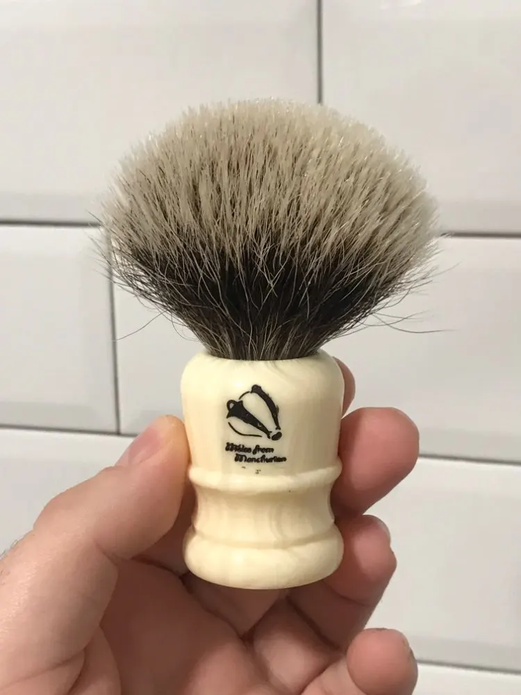 Brosse de rasage «Meles de mandchourie», 24mm, manche de couleur crème, en Promotion, livraison gratuite