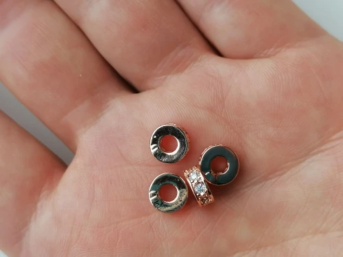 BTFBES-perles d'espacement, 4 pièces, en cuivre, Zircon, rondes et plates, breloques dorées, amples, pour la fabrication de bracelets et accessoires pour bricolage, bricolage, 4 pièces