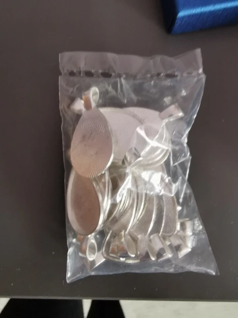 Reçu avant la date. Très jolis supports cabochons, argenté clair très brillants. Déjà commandé plusieurs fois. Je recommande.