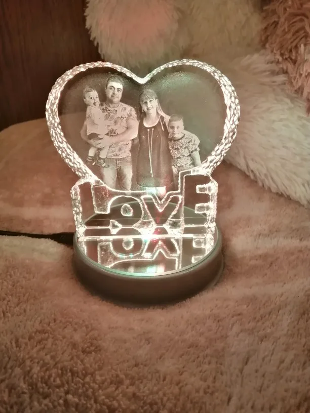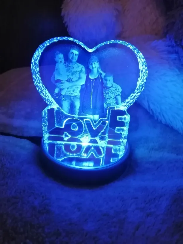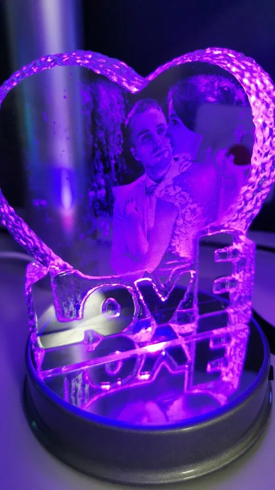 Cadre Photo en cristal personnalisé, coloré Base à LED photos gravées au Laser, cadeau, cadre Photo en verre personnalisé pour mariage