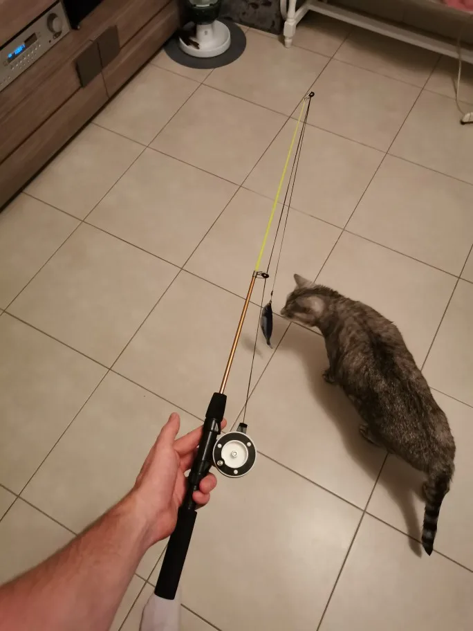 Canne à pêche rétractable et amusante pour chat, 1 pièce, jouet en plume, bâton interactif, fournitures pour animaux de compagnie