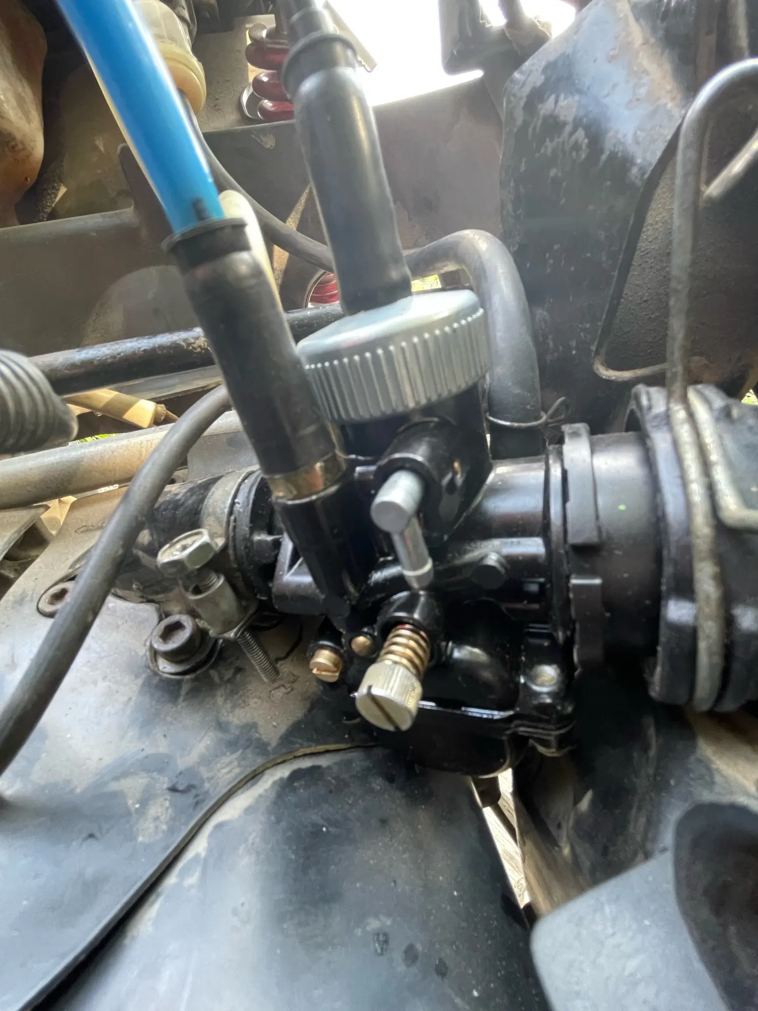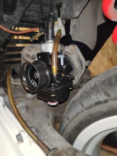 le carburateur est peint a l intérieur et la peinture se decolle au contact de l'essence. L'interieur du carburateur ne devrait pas etre peint.