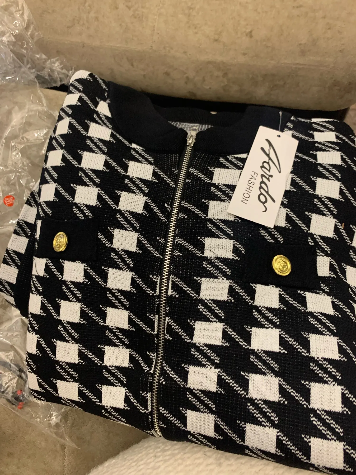 Cardigan tricoté pour femme, grande taille, pantalon culotte, ensemble survêtement Vintage, avec fermeture éclair, boutons, or, collection S-4XL
