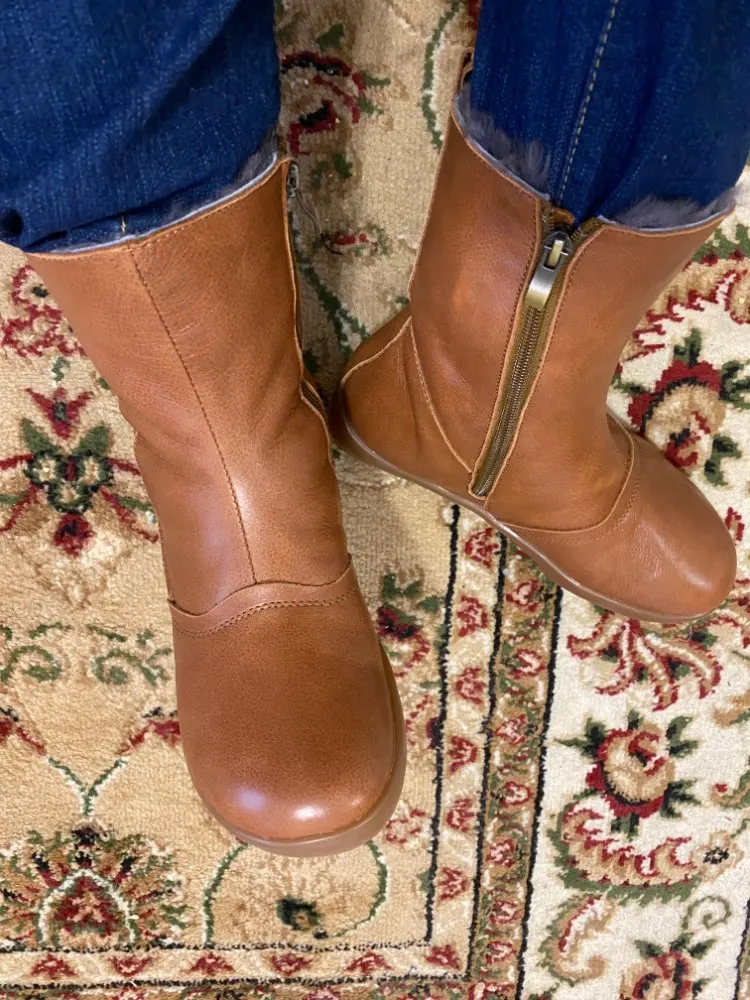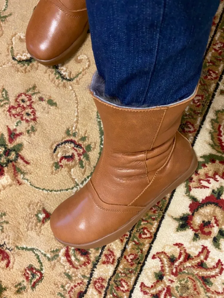Careaymade – chaussures en cuir véritable, bottes pour femmes, en laine d'hiver, en peluche, à semelles épaisses, faites à la main