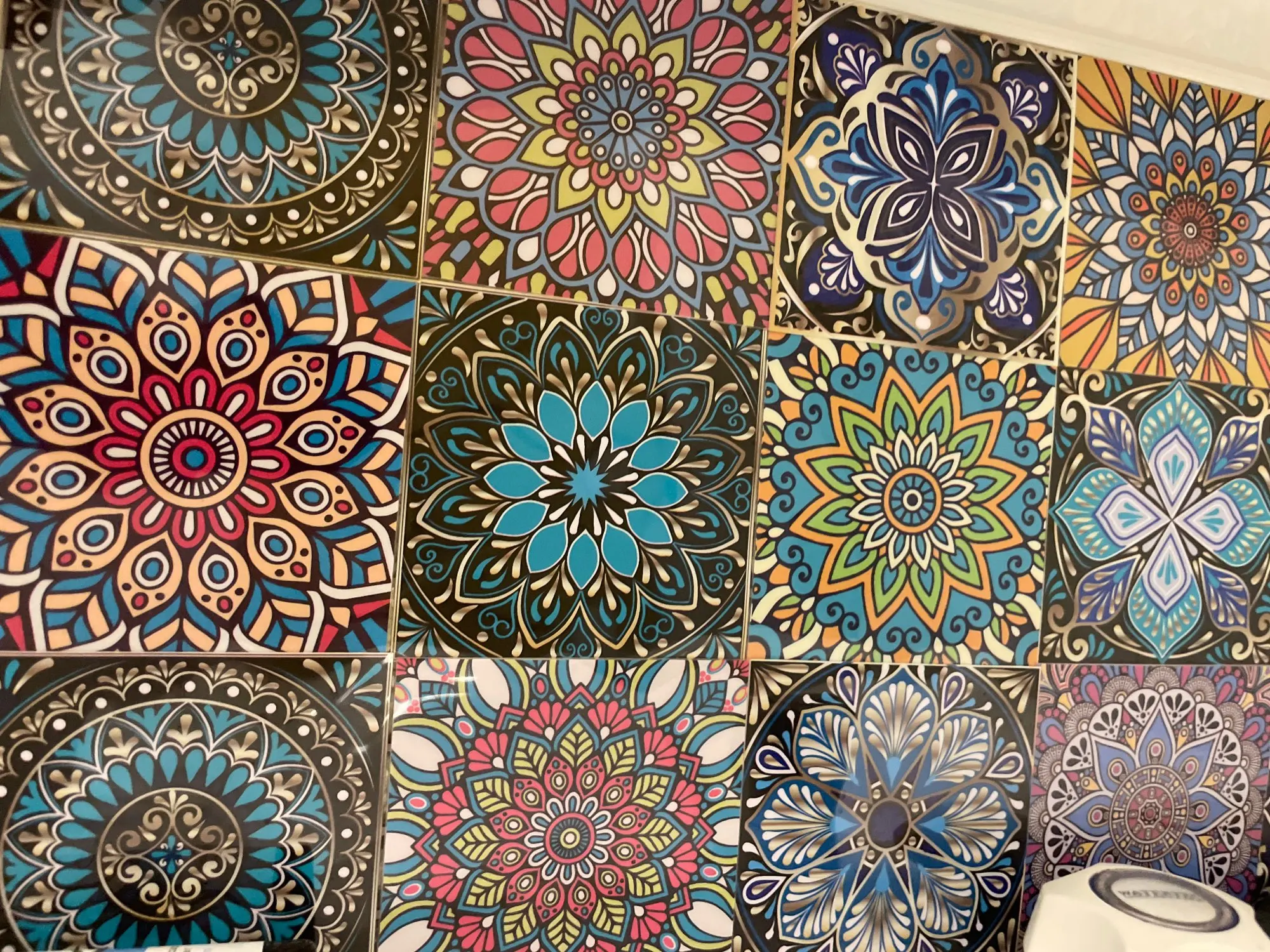 Carreaux durs en cristal de Mandala, autocollant Mural, 10/15/20/30cm, pour décoration murale, pour cuisine, salle de bain et maison, Art brillant, affiche murale étanche
