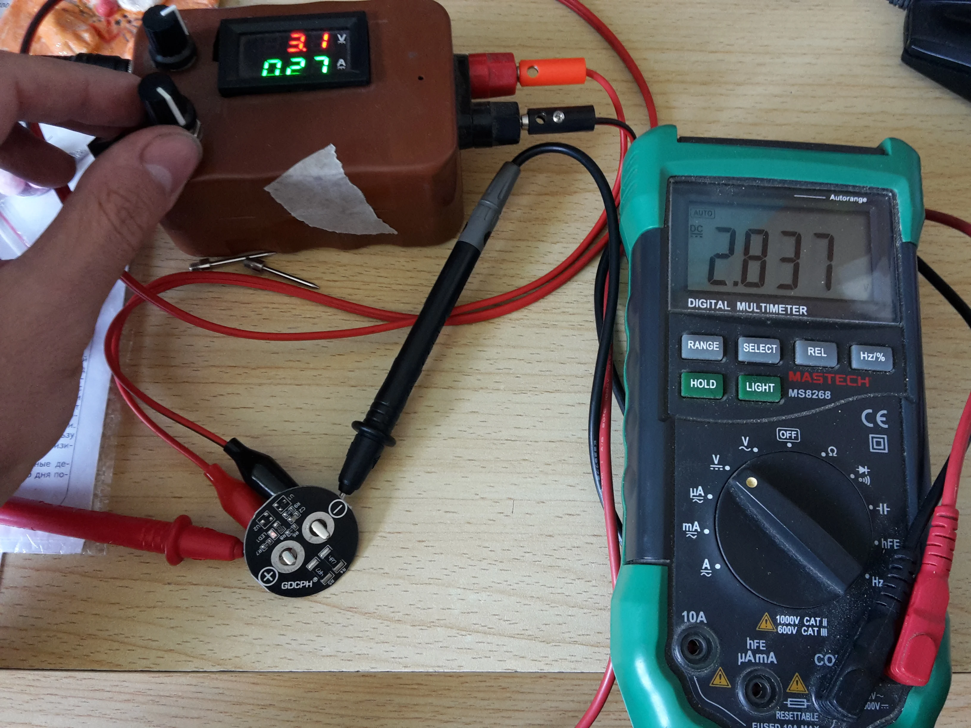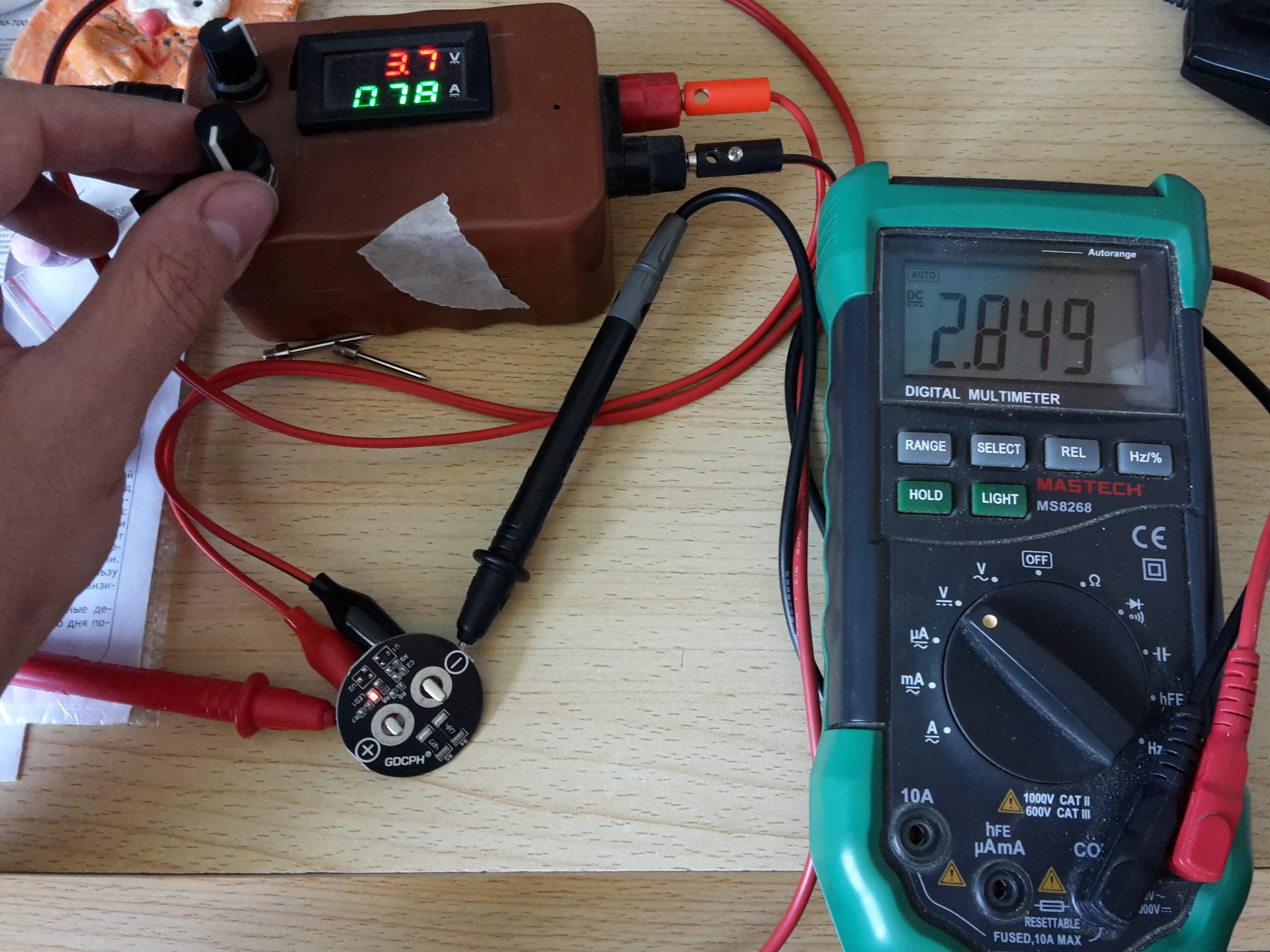 EN : Balanced Starting Voltage is not 2.65V as described but 2,81 V. FR : La tension d'équilibrage débute à 2,81V et non pas à 2,35V comme décrit. La LED s'allume à 2,82V. Les résistances d'équilibrage peuvent dissiper 500mA environ. Elle chauffent trop au delà. La consommation au repos (à 2,7V par exemple) est inférieur à 1mA.