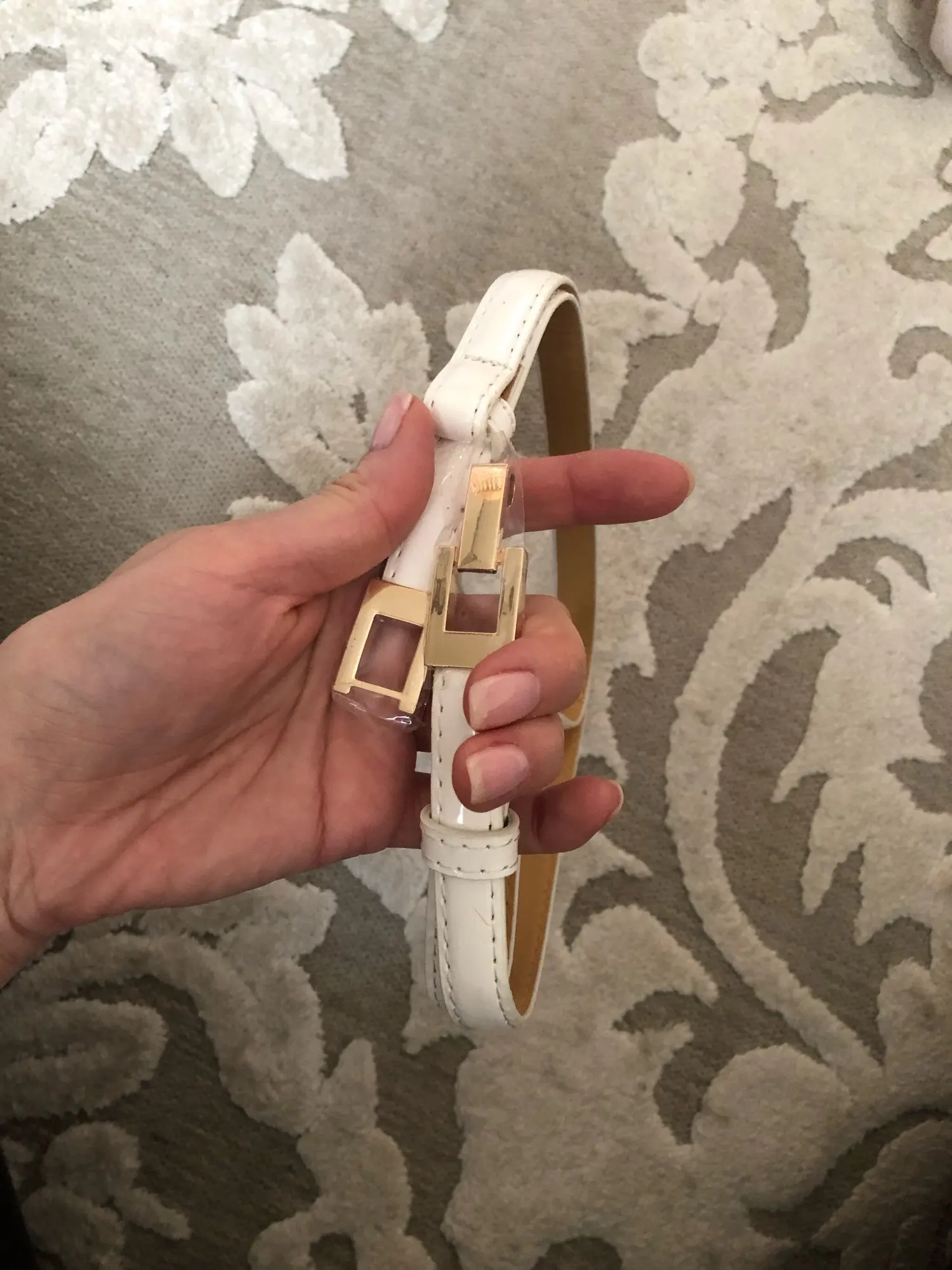 Jolie ceinture femme de couleur marron. Reçue assez vite et en parfait état dans du papier bulles. Ceinture fine qui est chic et classe à la fois. Bel achat... je recommande !