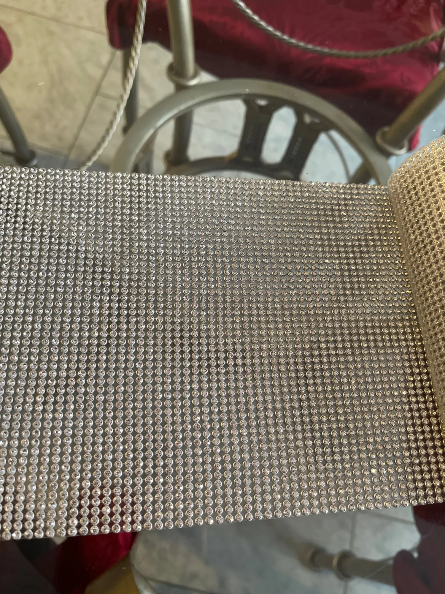 Chaîne à mailles pour vêtement, 48 rangées, SS8, 15.5x120cm, strass, base en aluminium argenté, garniture en cristal