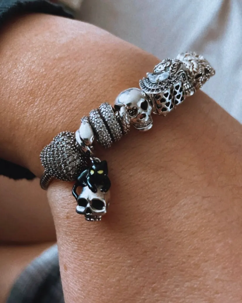 Chaîne automne en serpent, squelette, pour fille, motif ouvert, cœur, bricolage perles fines, breloques Pandora originales, argent 925