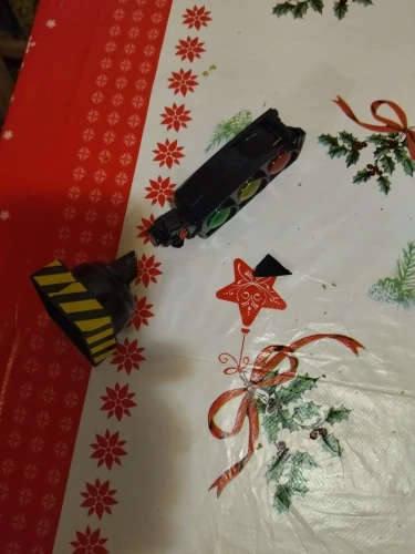 La base est arrivée cassée mais j'ai été remboursée. D'un côté un bouton qui joue plusieurs mélodies plutôt sympas même si un peu fort à mon goût. Et de l'autre côté un bouton qui fait passer du vert au jaune puis rouge automatiquement selon une certaine temporisation. Fonctionne avec 3 piles lr44 fournies.