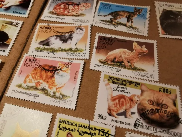 Chat chaton, 50 pièces/ensemble, tous différents de nombreux pays, pas de répétition avec timbres postaux non utilisés, pour la collecte