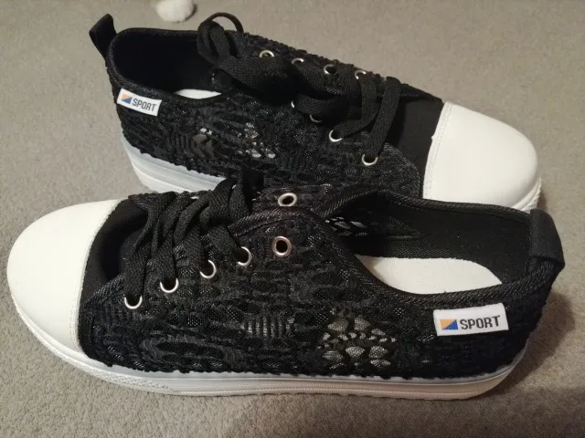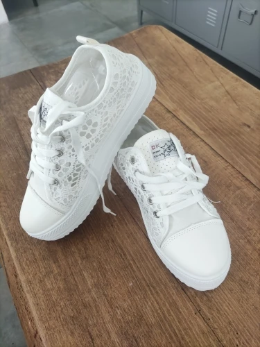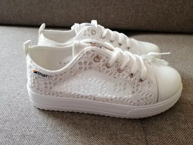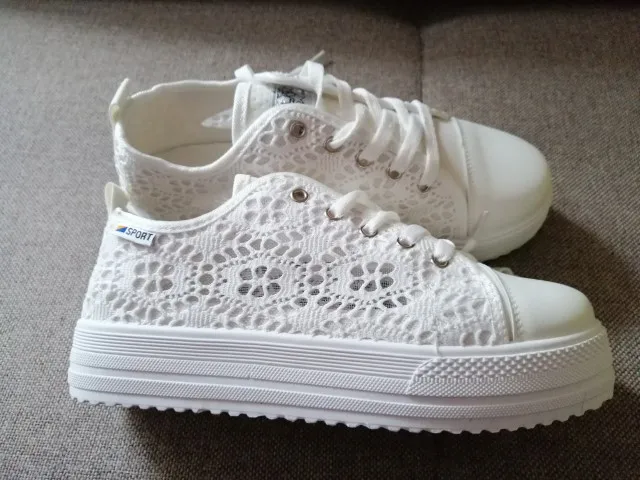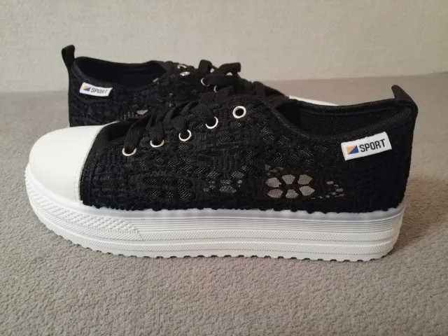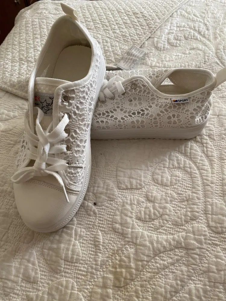 Chaussures d'été en toile à décolleté, chaussures creuses en dentelle, florales, respirantes, plateforme, blanches et noires, collection décontracté