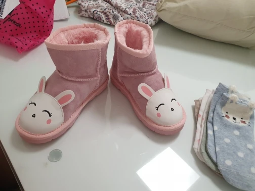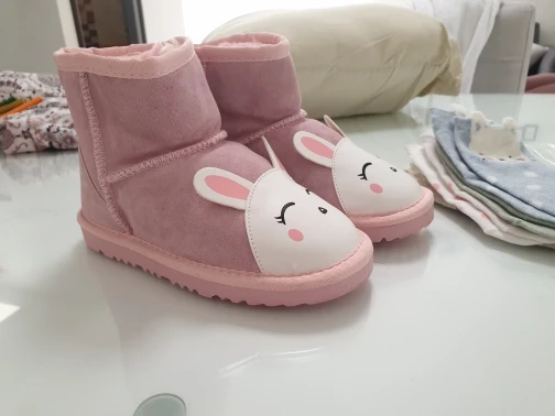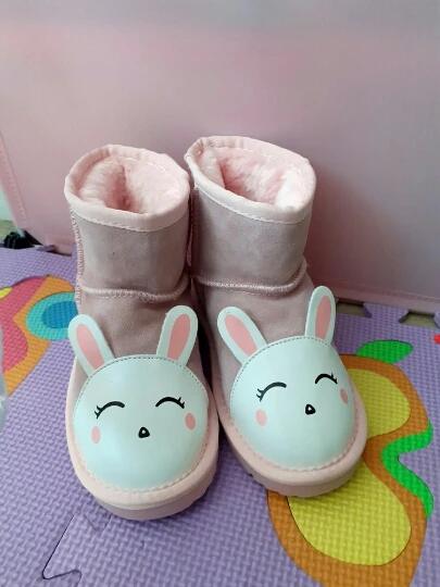 Chaussures d'hiver en cuir de vache pour enfant, bottes avec dessin animé avec petits animaux, bottes d'hiver, chaudes et en velours