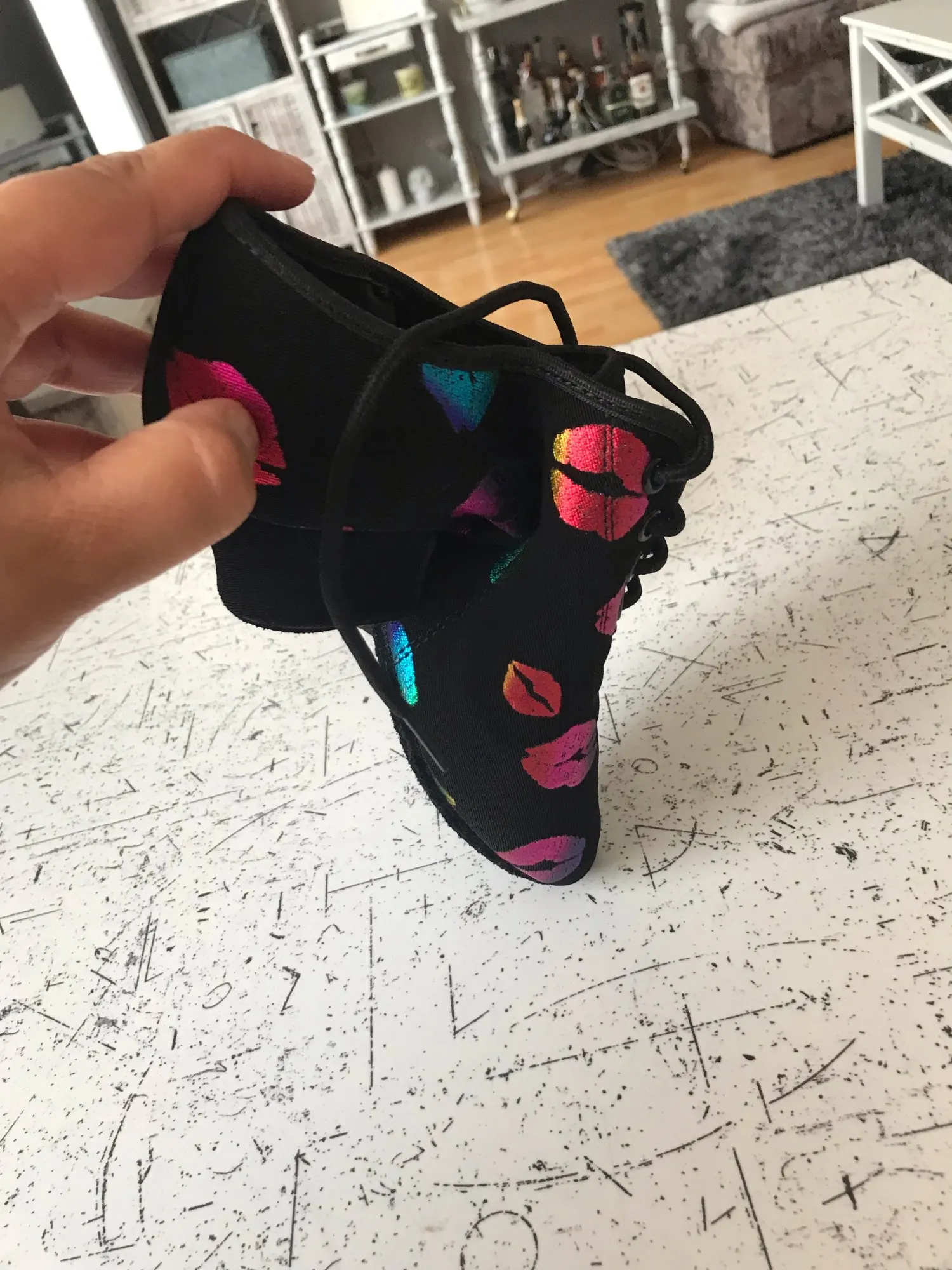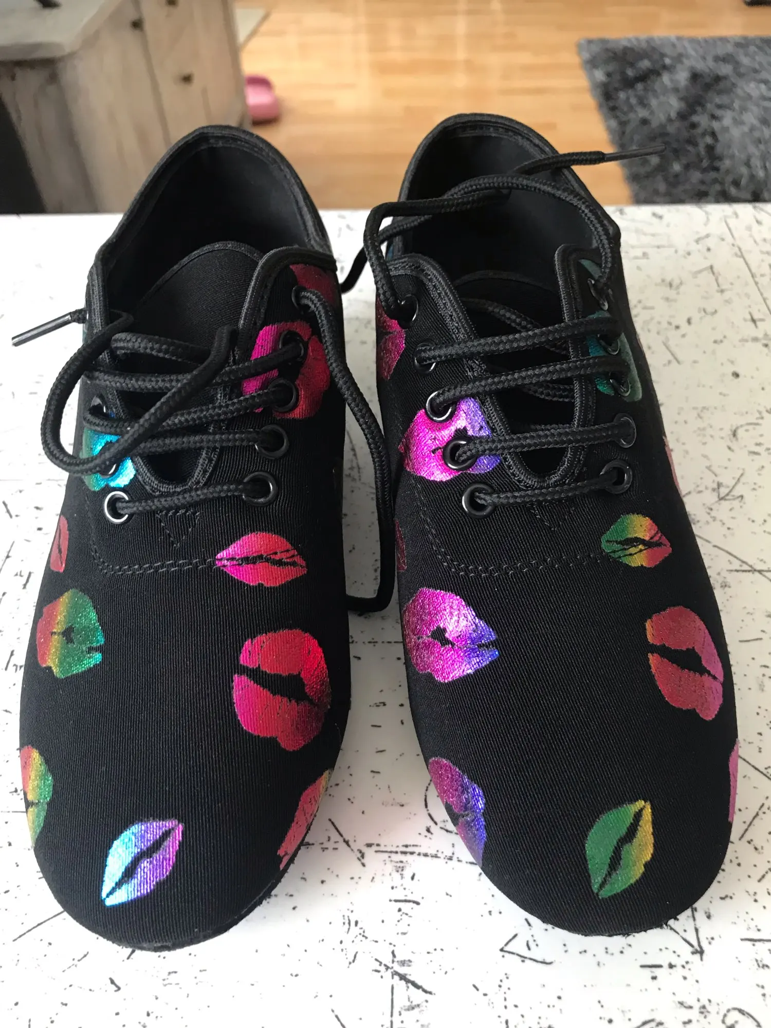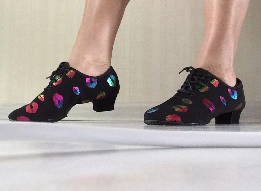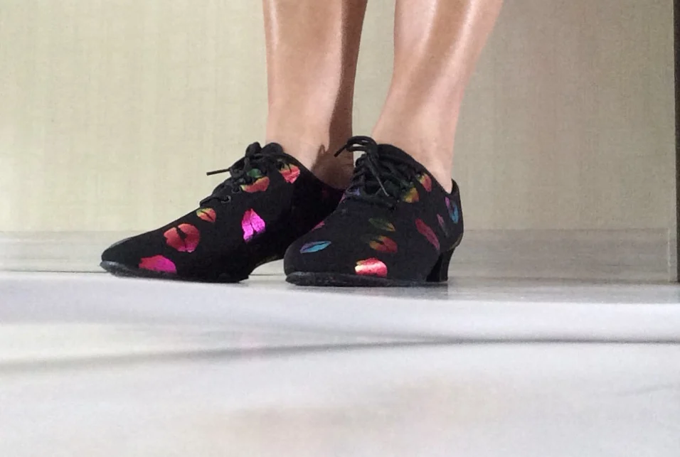 Chaussures de danse à talons hauts pour femmes, baskets pour salle de bal, chaussures de danse latine, noires, rouges, à bout fermé, avec impression de lèvres