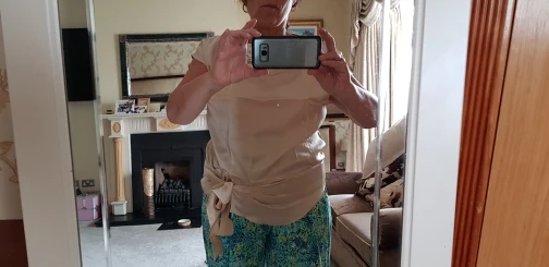 100% silk, perfect! My bust 90, size L fit great