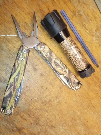 Chêne moussu 2PC 11 en 1 Multi pince et lampe de poche avec poignée camouflage dénudeur Mini pince pliante Multitool