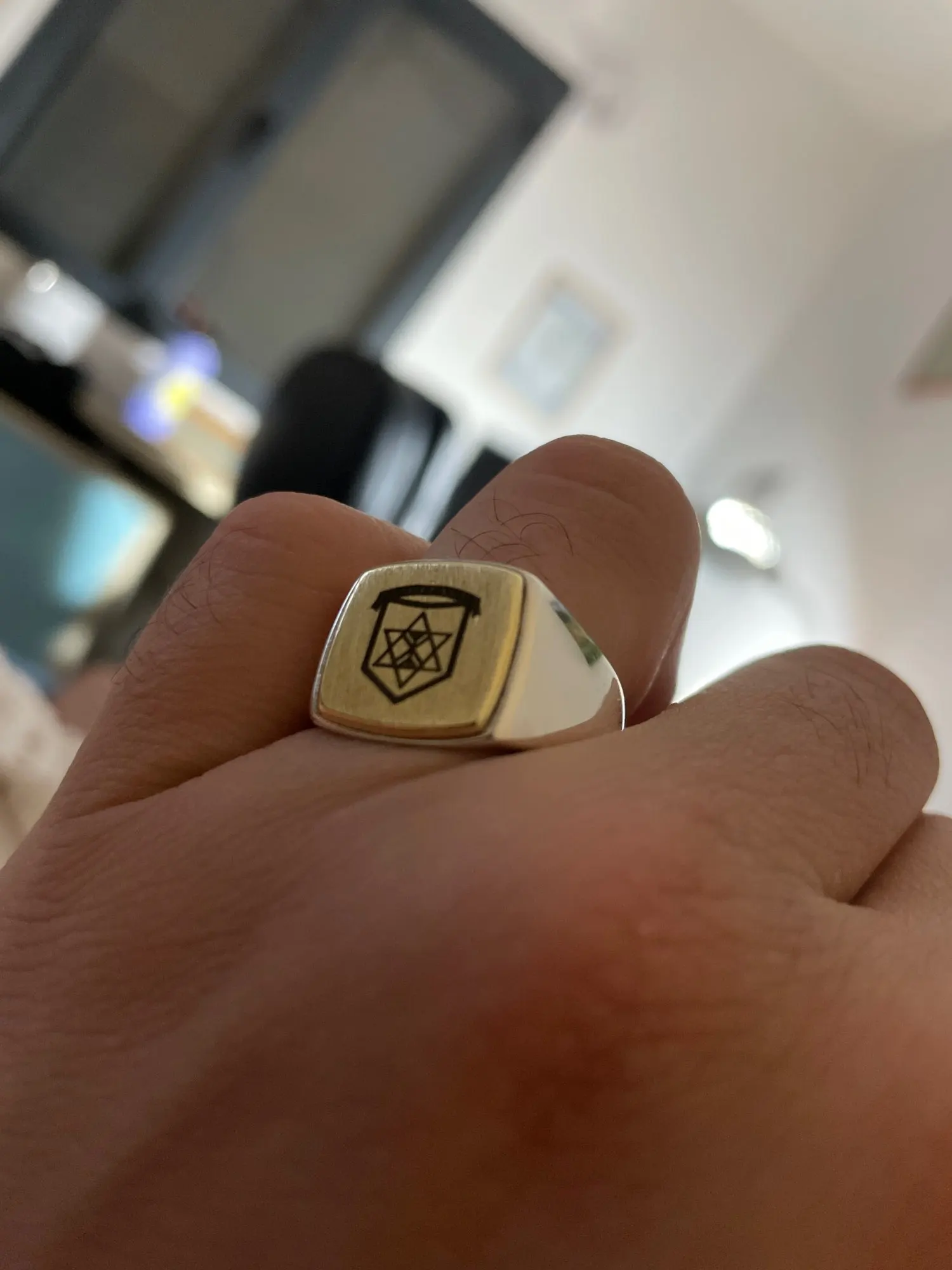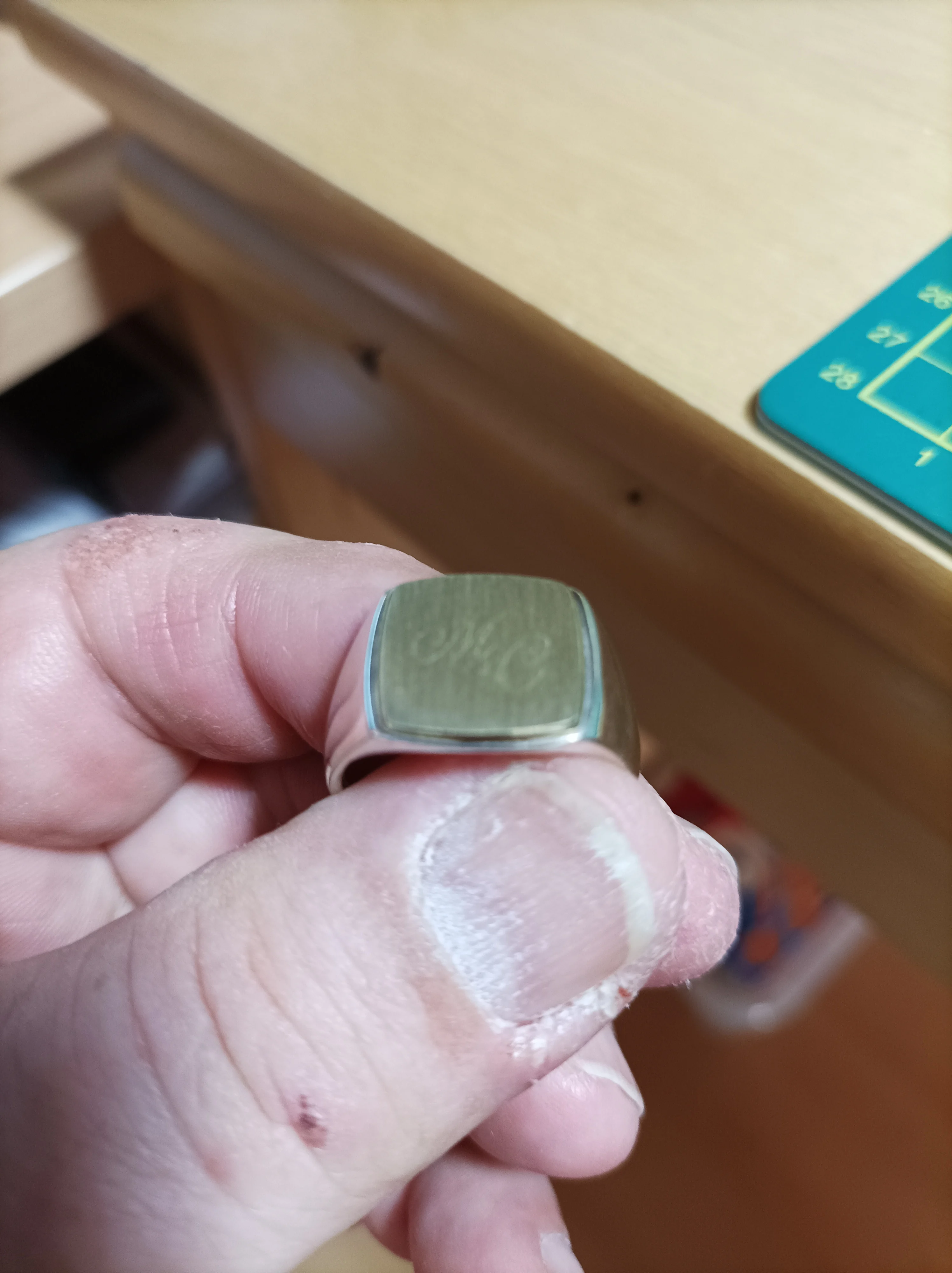 Parfait. Belle bague épaisse. Gravure correspond.