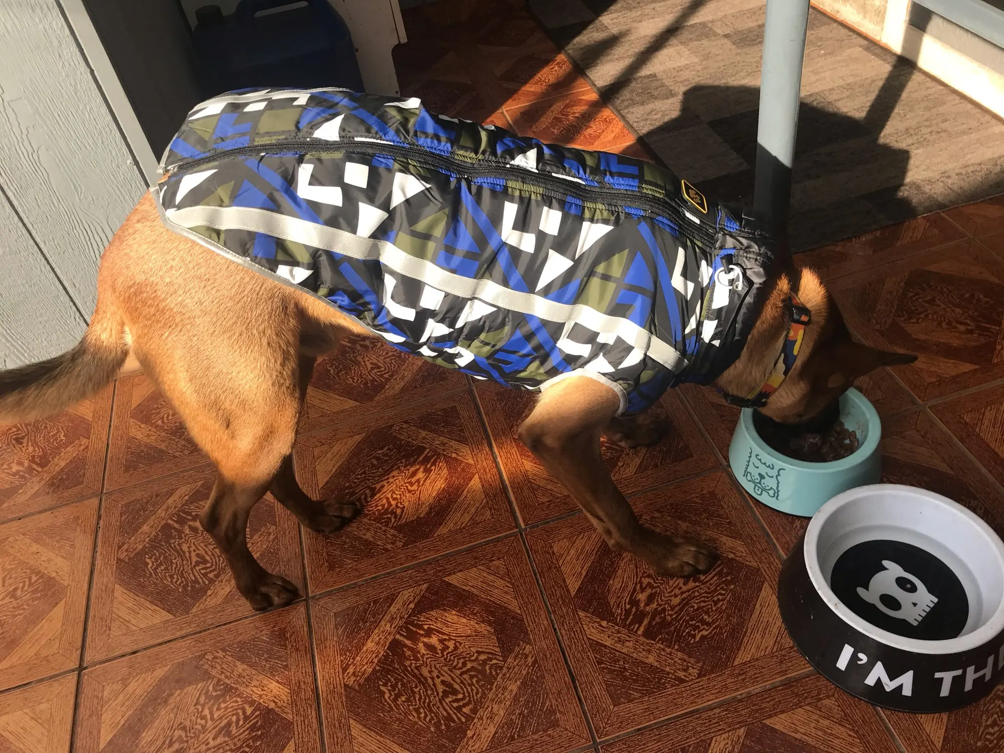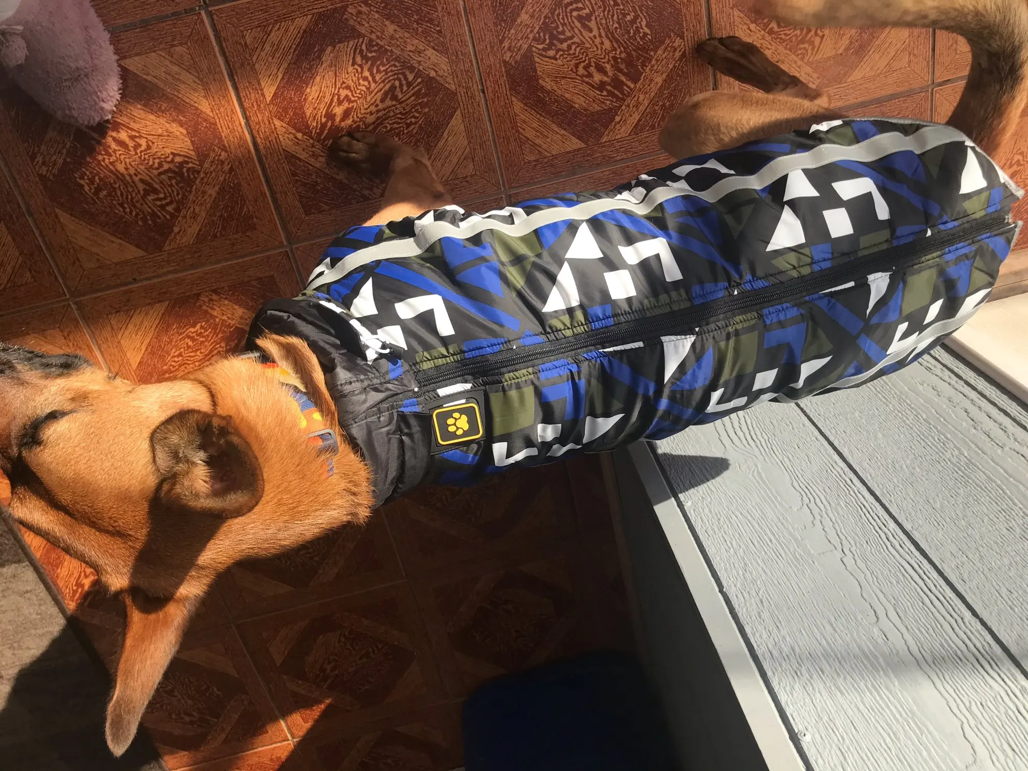 Super blouson qui fait vraiment le travail. Facile à fermer car protection en plastique pour ne pas coincer le poil de mon chien. Tient chaud et quasi imperméable (l’eau passe quand même un peu mais pas comme si c’était un pull non plus) facile à nettoyer (serviette ou éponge) et couleur vraiment sympa. Le plus du vendeur : rapide! J’étais pressé et le vendeur a respecté le contrat. Très heureuse de mon achat qui est vraiment de qualité et peu excessif!