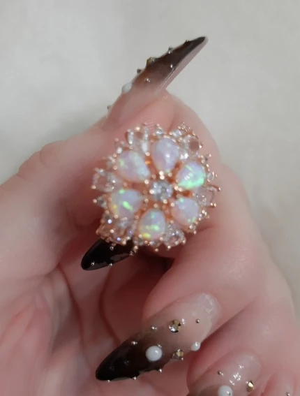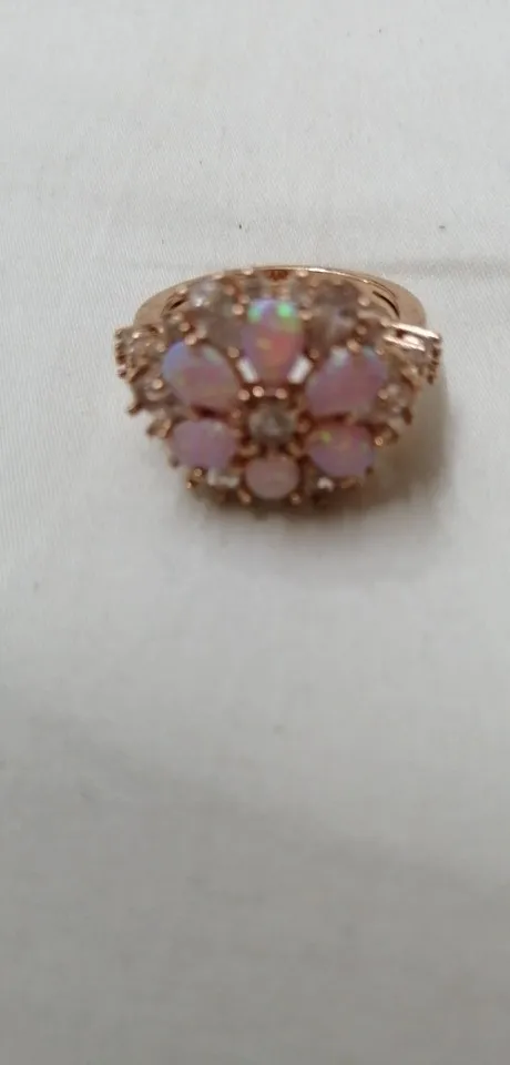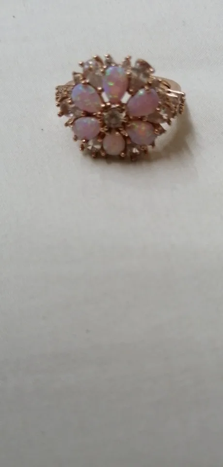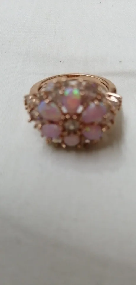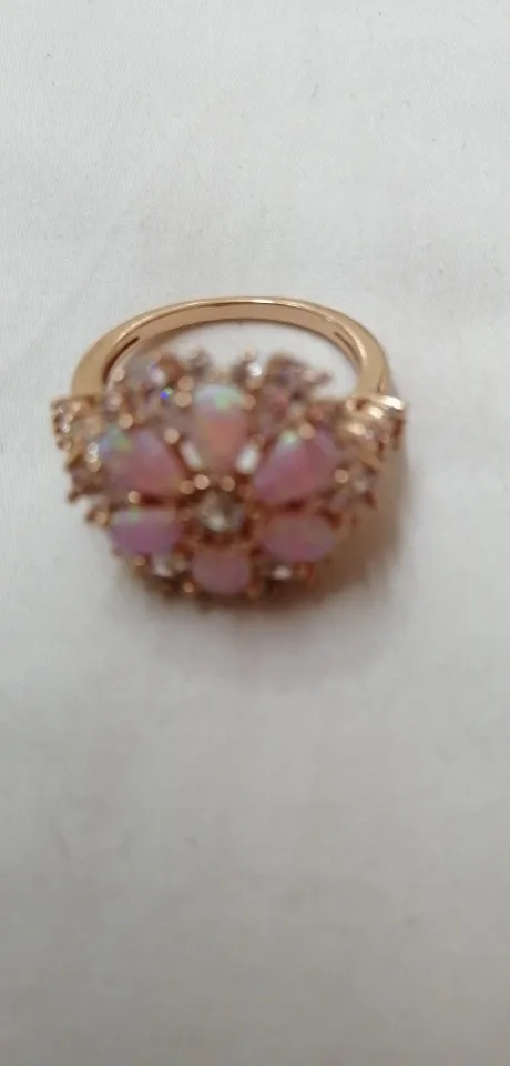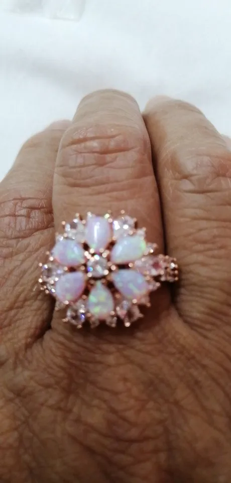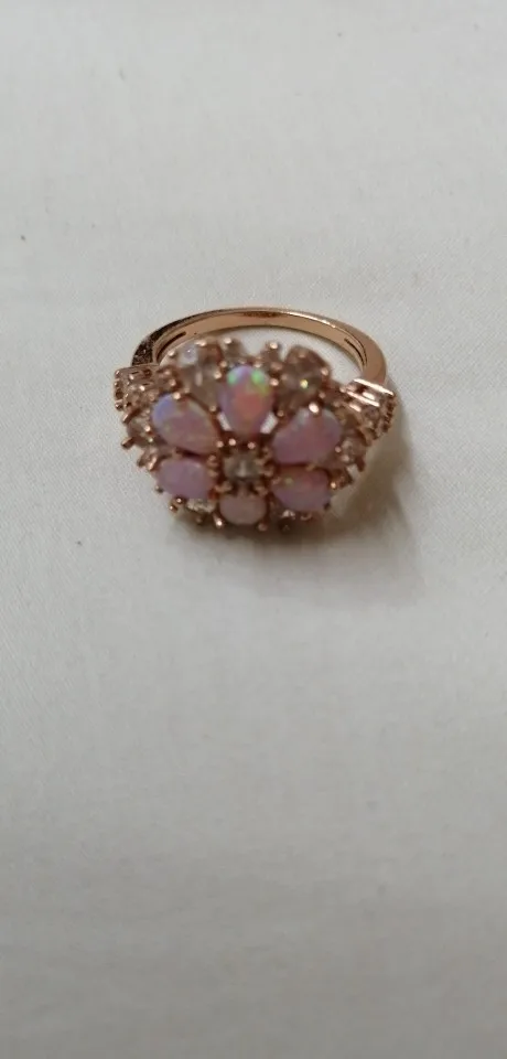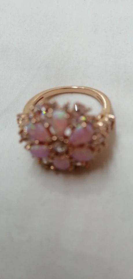 CiNily somptueux grand Rose opale de feu anneaux avec pierre Rose or couleur cristal clair fleur flore cerisier fleur bijoux femme fille