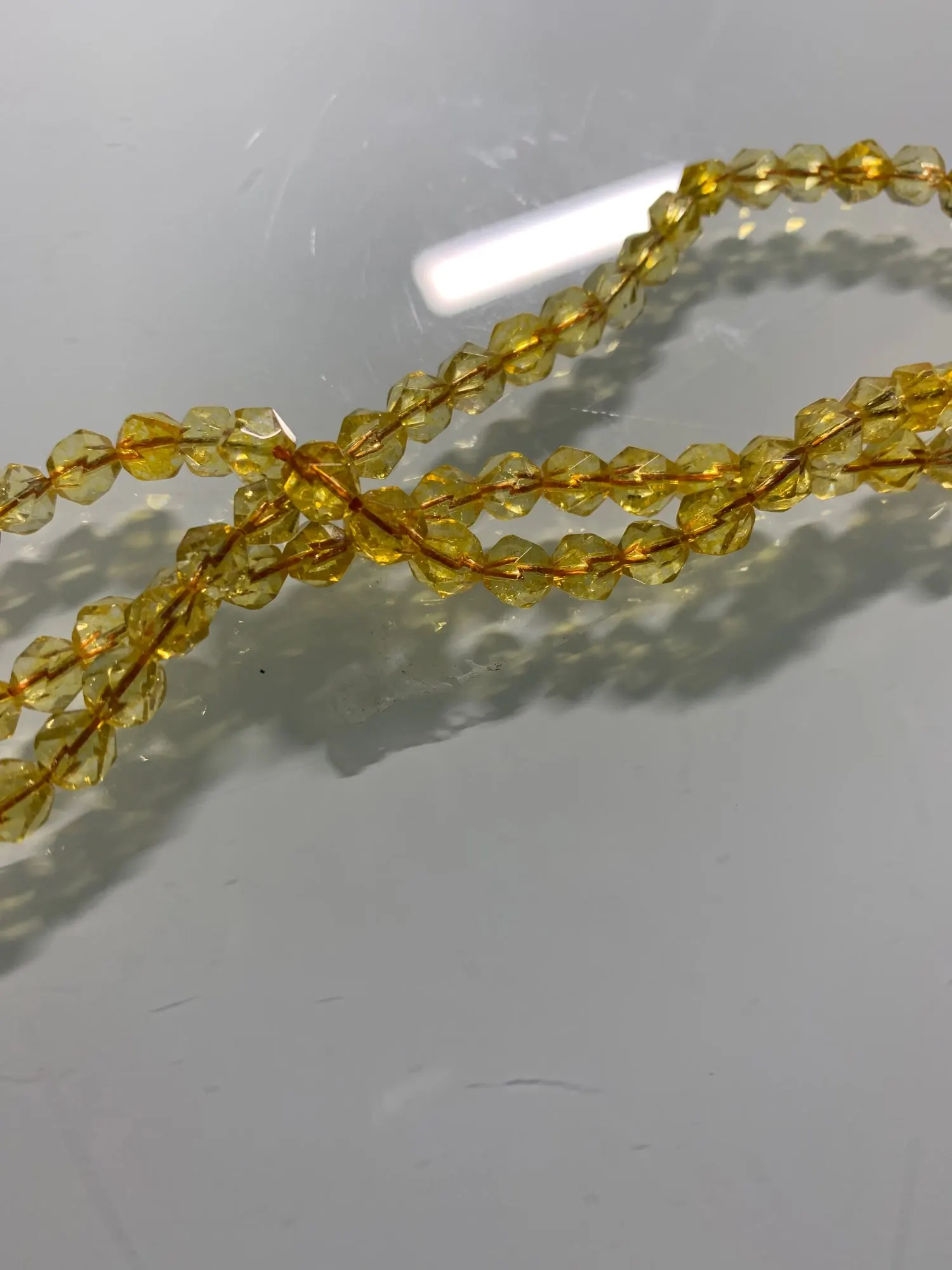 je doute que ce soit effectivement de la citrine. Cela ressemble plus à du verre coloré.