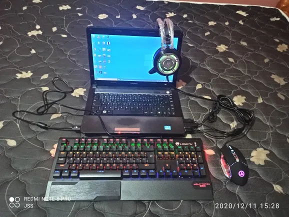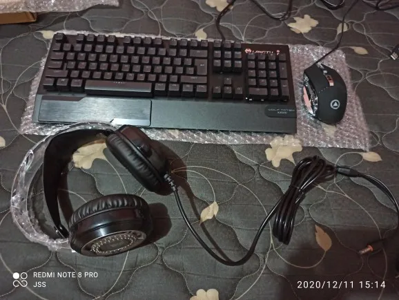 Clavier de jeu mécanique, souris de joueur avec le casque de jeu de PC, USB rétro-éclairé multicolore de LED câblé avec le commutateur bleu, repose-main