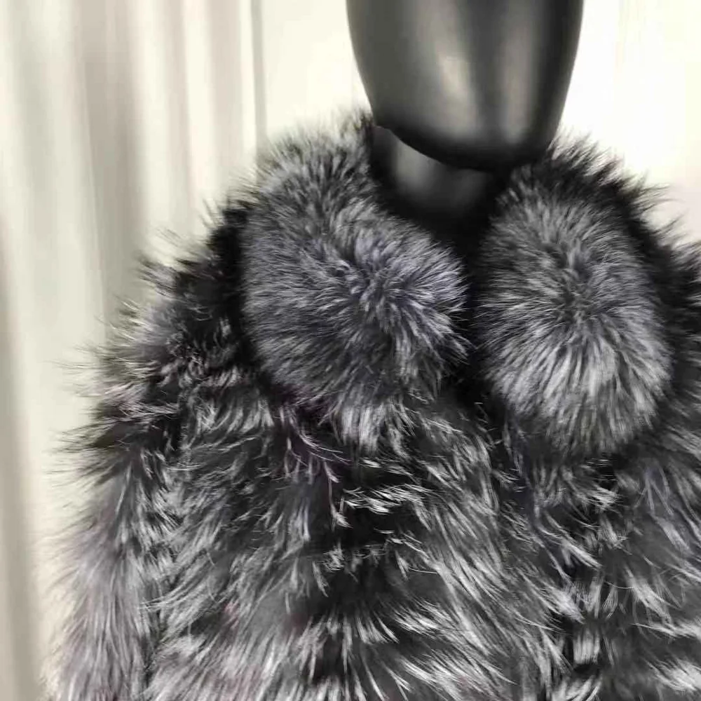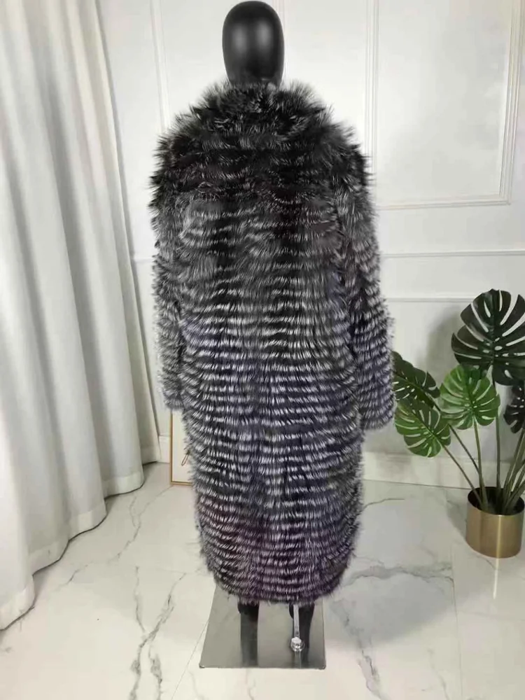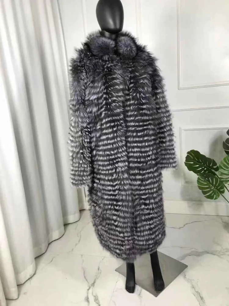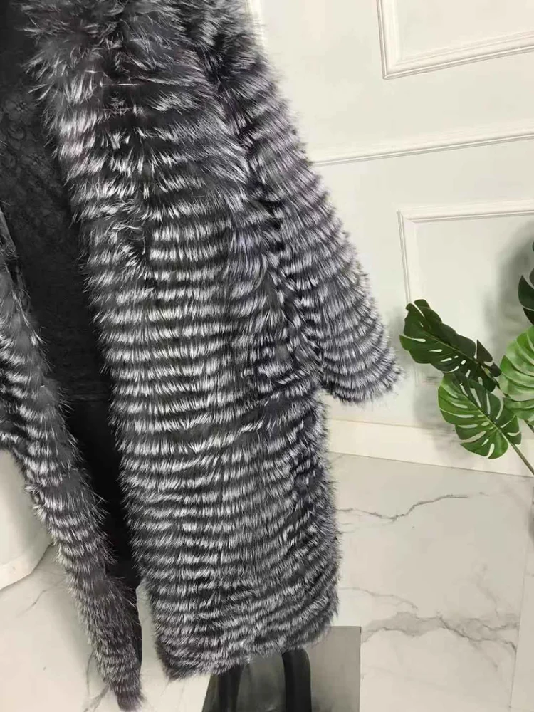 CNEGOVIK-manteau de fourrure renard argenté | Manteaux de fourrure longs naturels, grande taille pour femmes