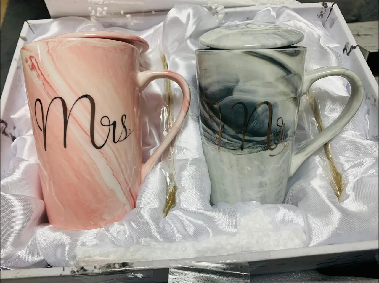 Coffret cadeau en céramique avec motif marbre, FSILE, à bordure dorée, tasse de café pour Couple, tasse de flamant rose