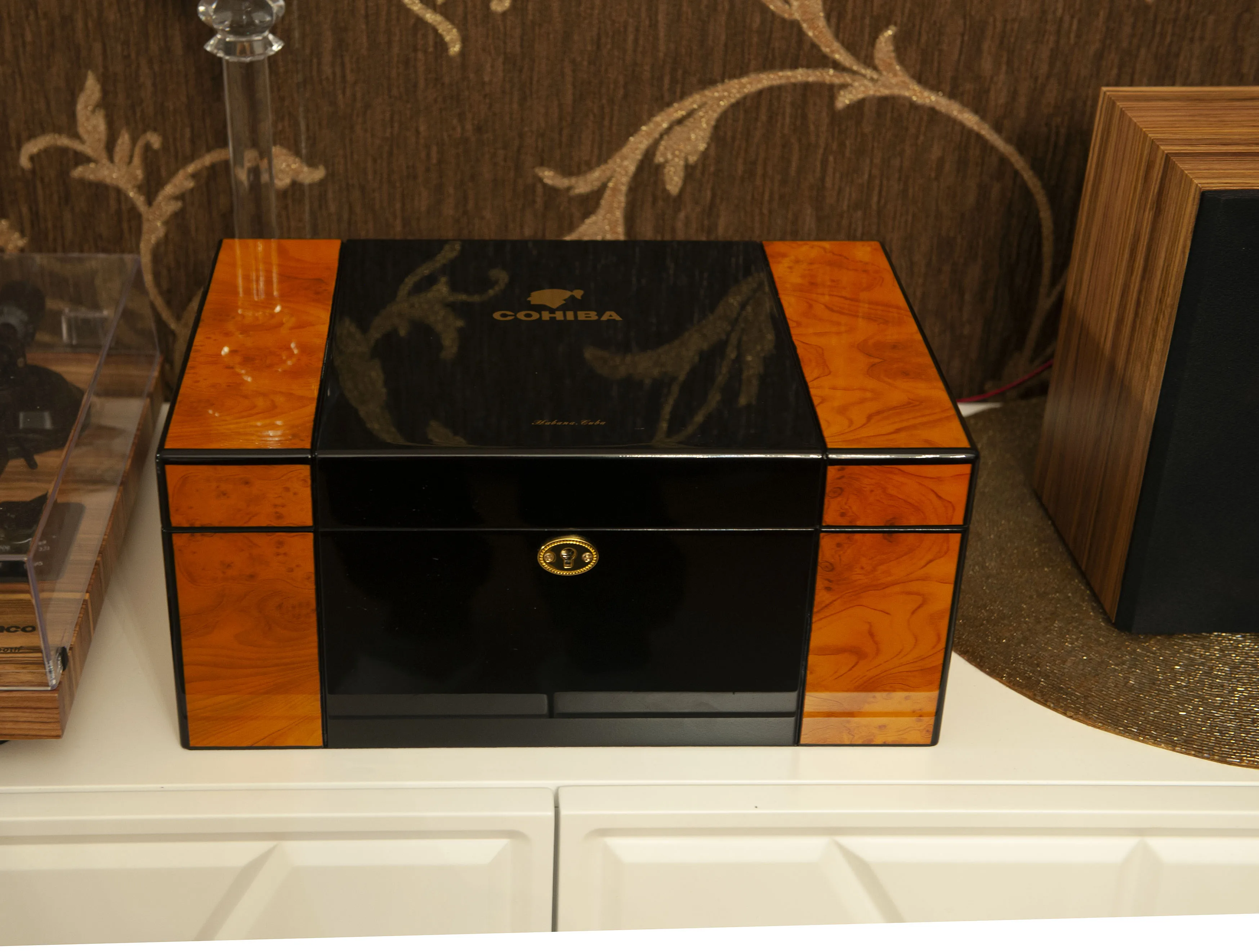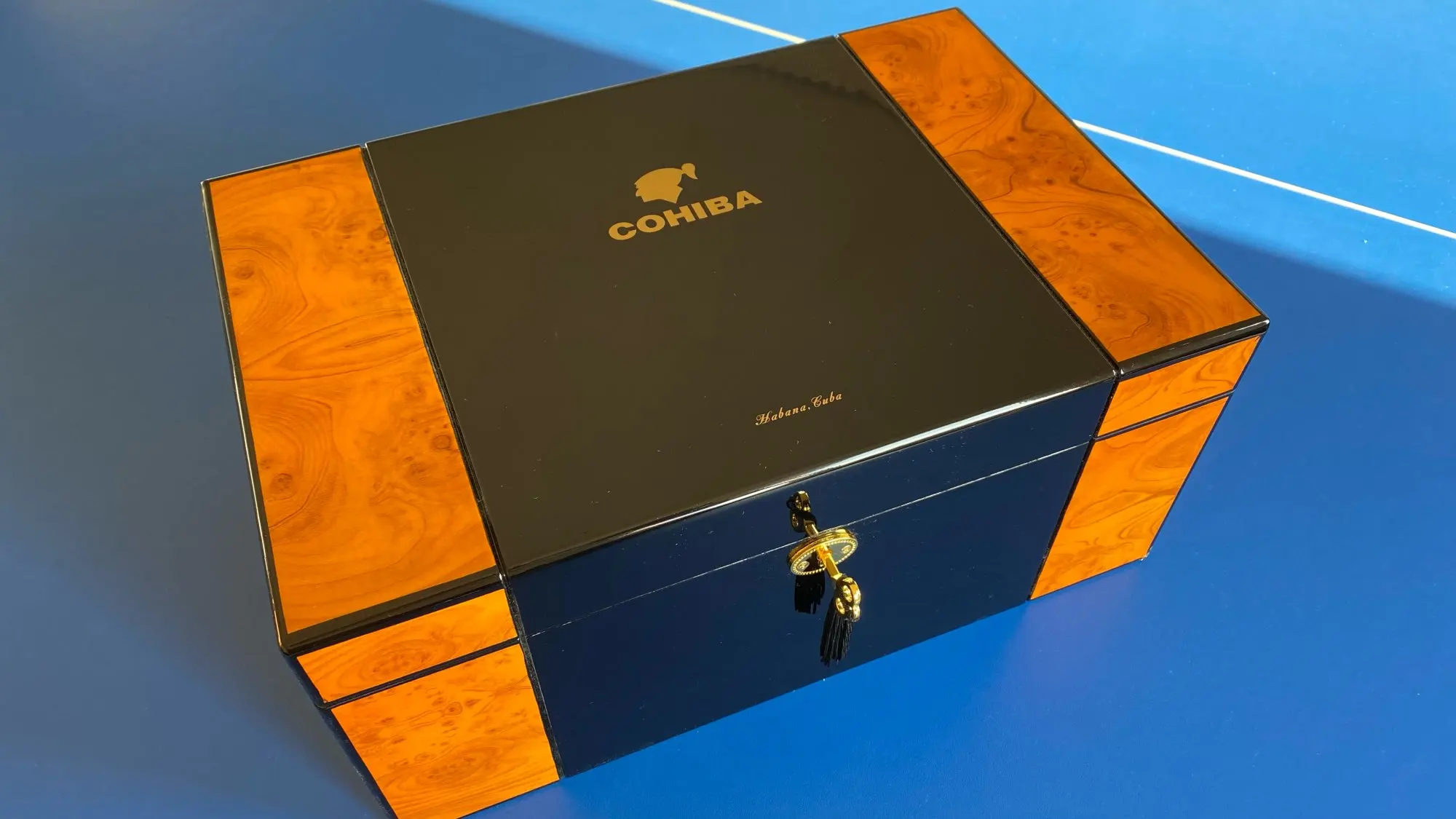 COHIBA — Boîte à cigare avec serrure, grand capacité, humidificateur avec hygromètre, étui en bois de cèdre, finition brillante digne d'un piano