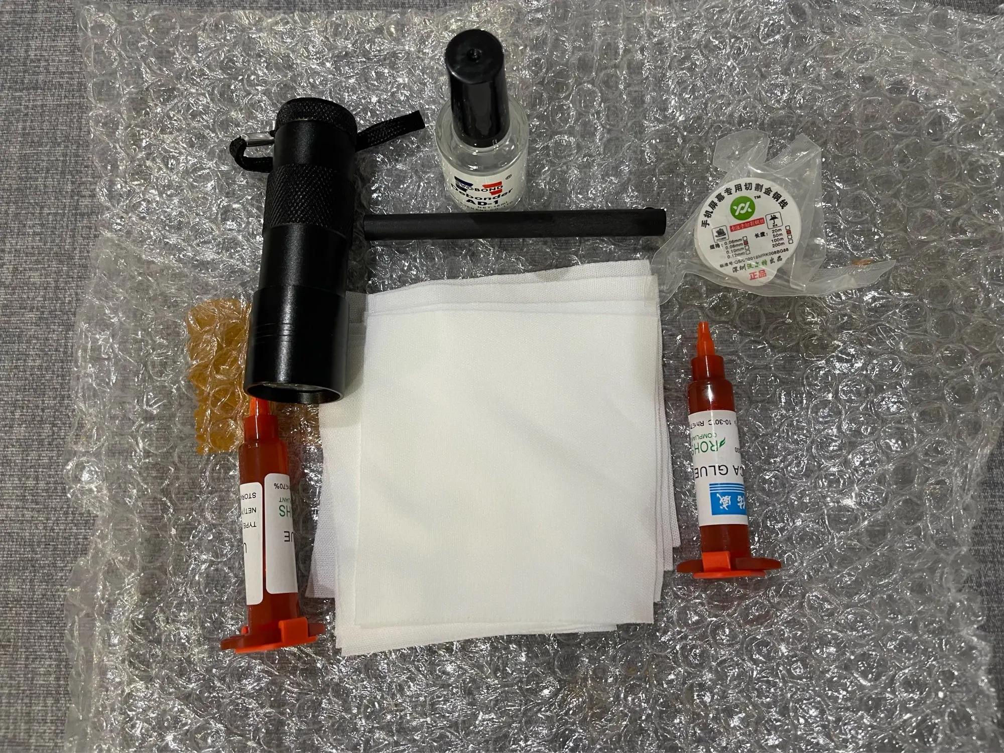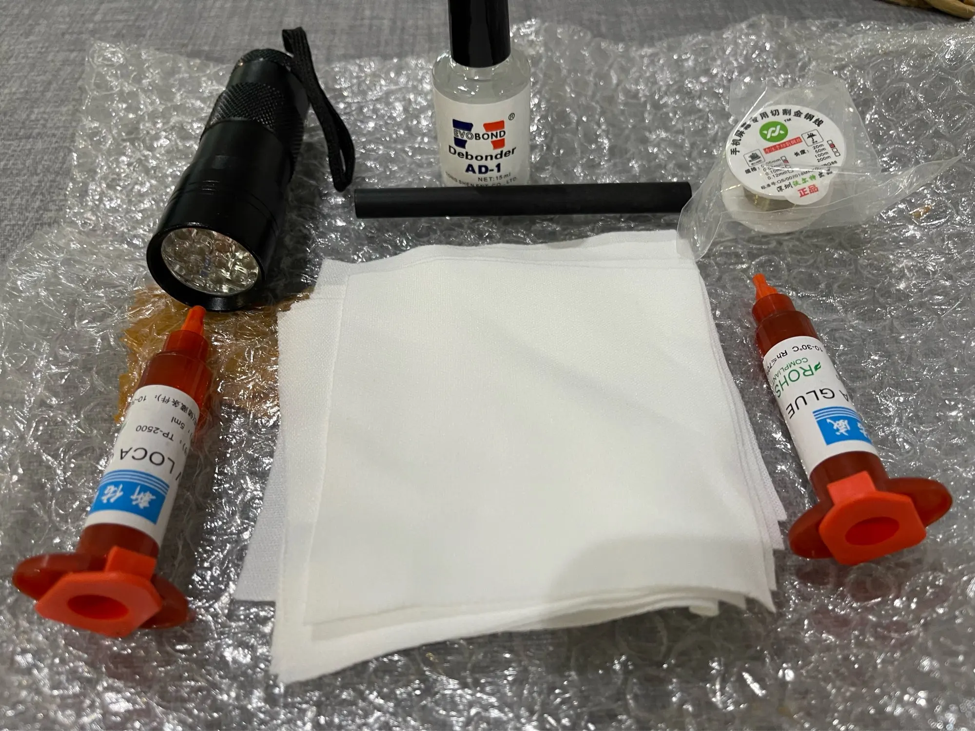 Colle LOCA tp-2500 UV 7 en 1, 5ml, lumière à polymérisation à 12led, dissolvant de colle UV, 20g + fil de coupe, 50m + vêtements pour réparation d'écran tactile LCD