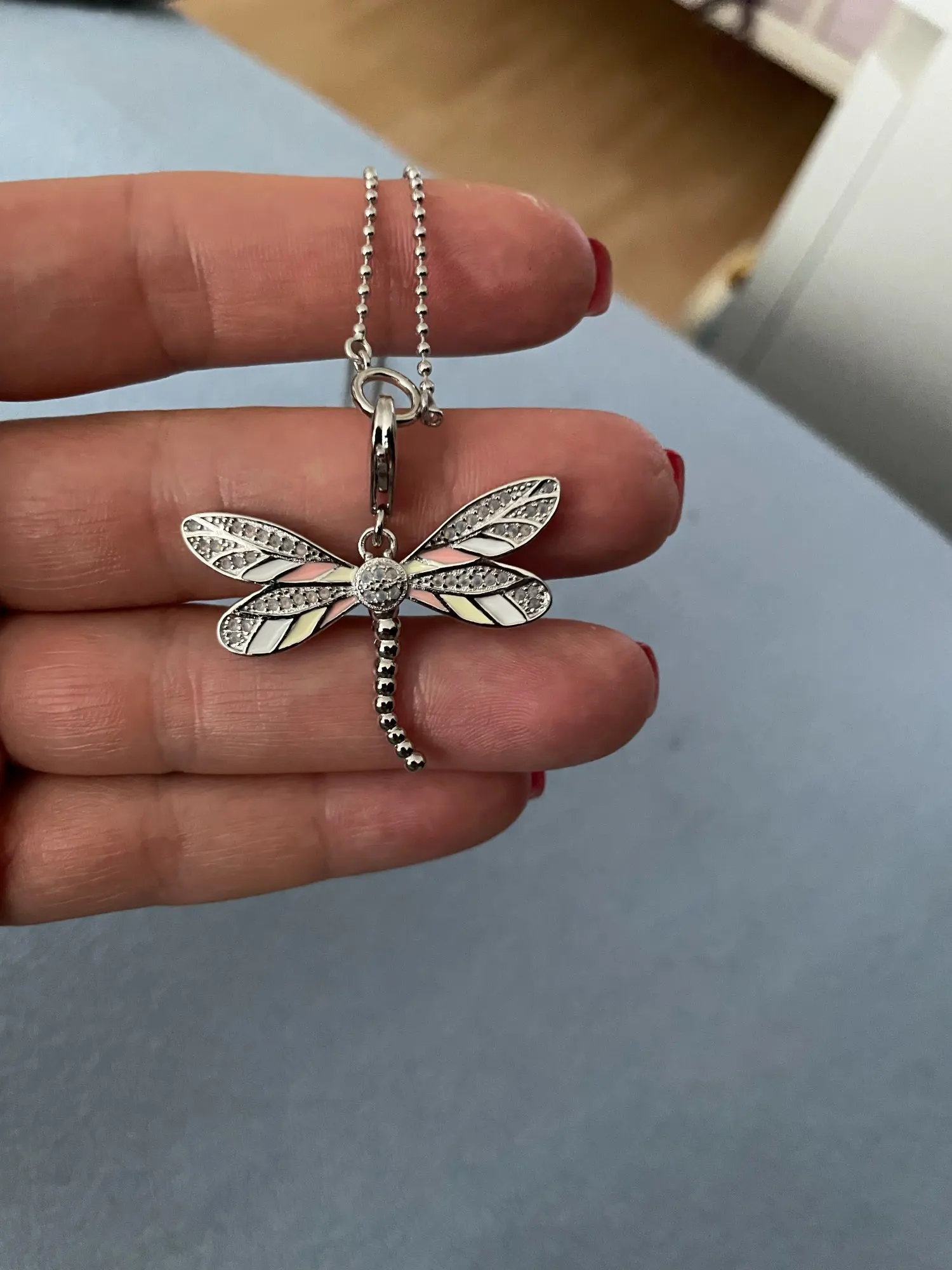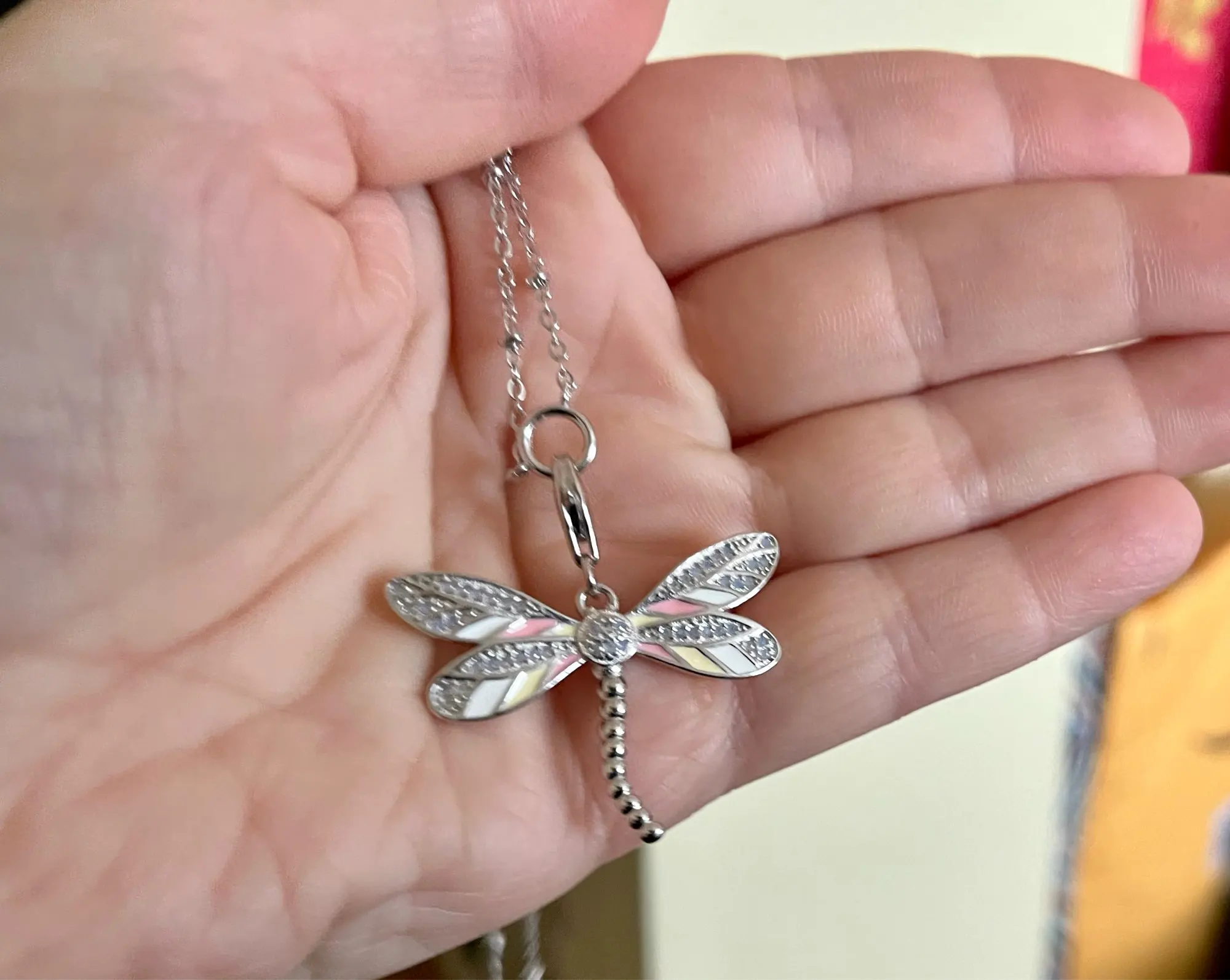 Charm Necklace Pink Dragonfly