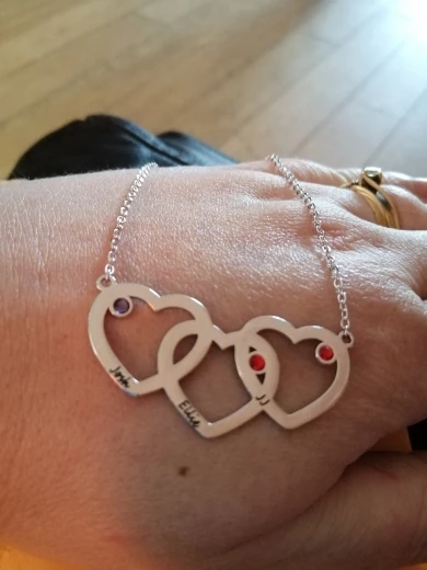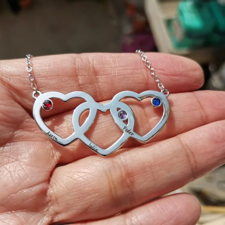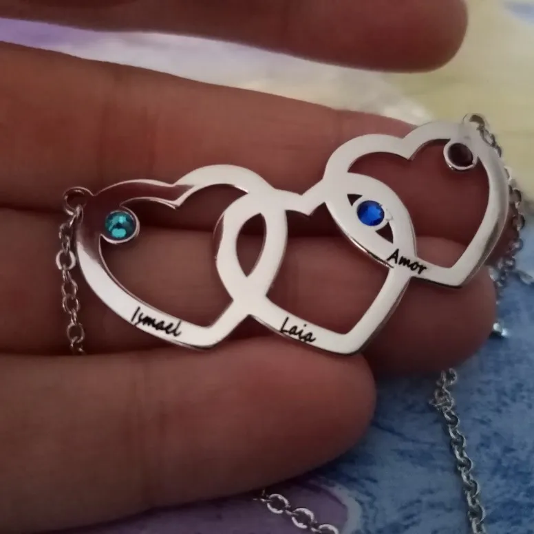 Collier à coeurs entrelacés personnalisé, pendentif gravé avec 3 pierres de naissance, en argent Sterling 925, nom (bijouora NE102402)