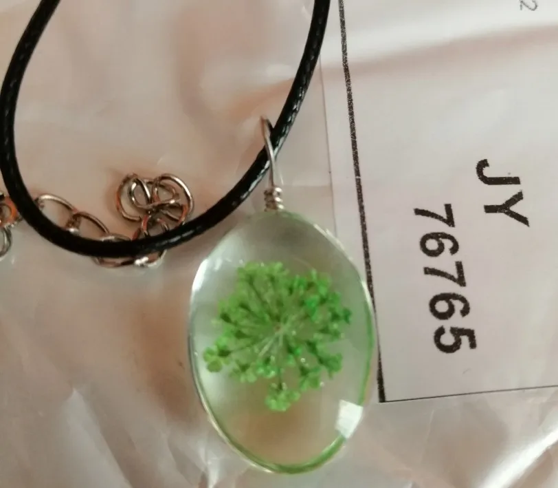 Collier avec pendentif Ellipse en verre Transparent fait à la main, fleur séchée, conservation permanente, bijoux pour femmes, corde de cire à la mode