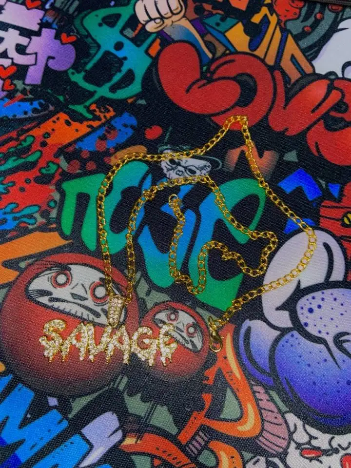 Collier avec pendentif en lettres Bling sauvage pour hommes, collier à mailles scintillantes et ras du cou, Hip Hop, bijoux à la mode, pour hommes