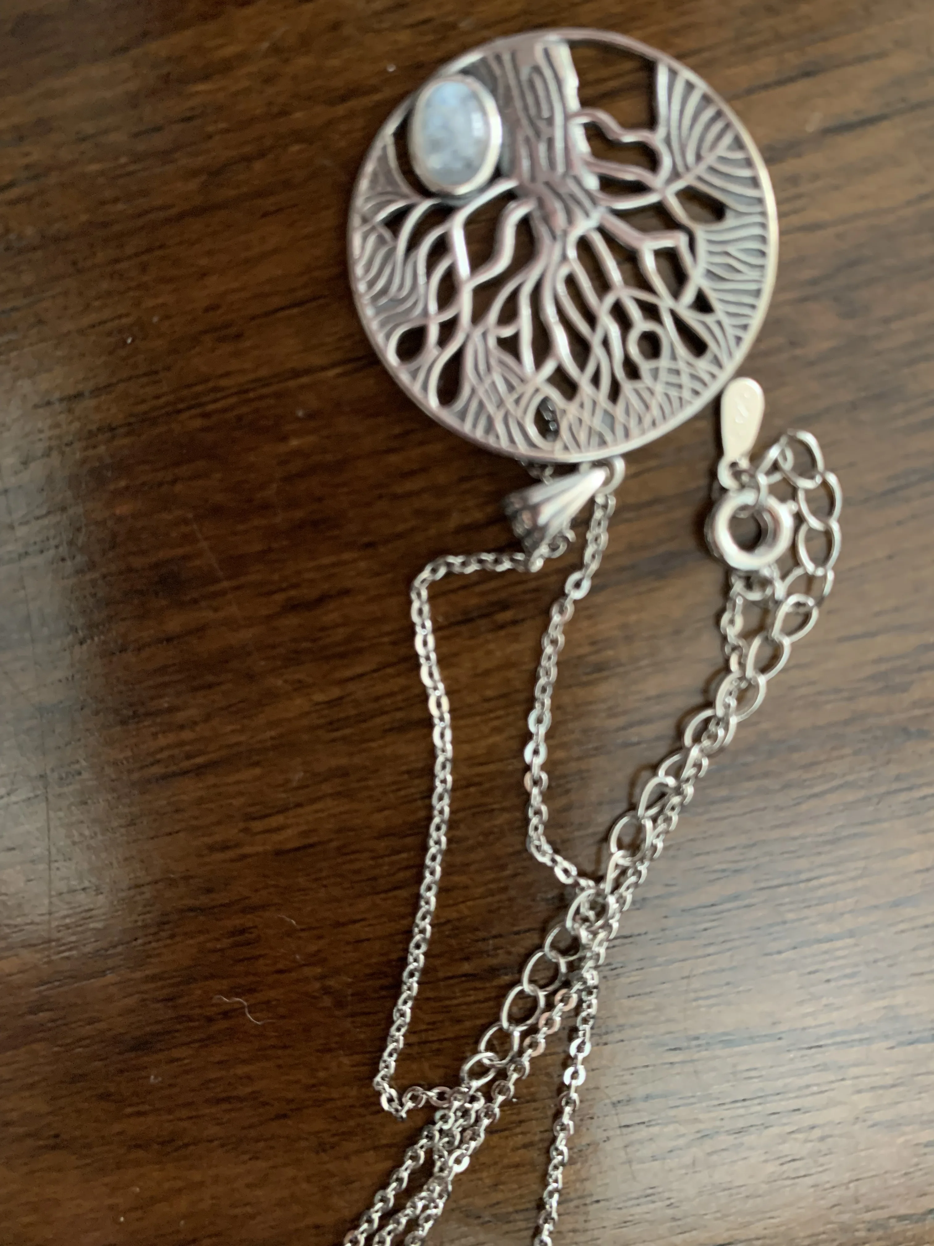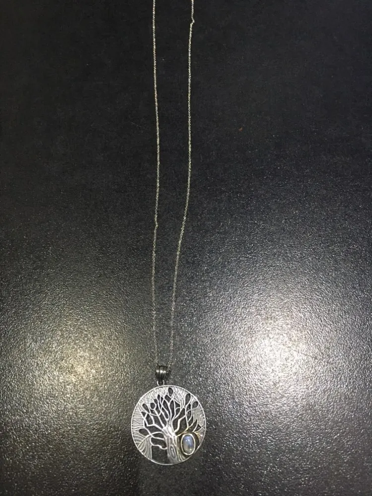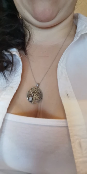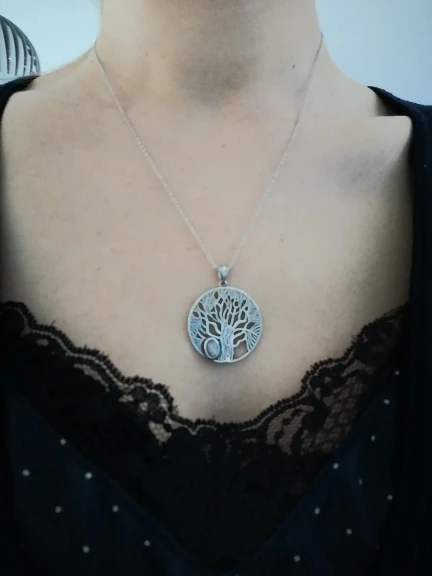 J'adore le pendentif cest mon chéri qui me la offert il et en argent et en plus cest une pierre de lune car elle a un trou pour vivre