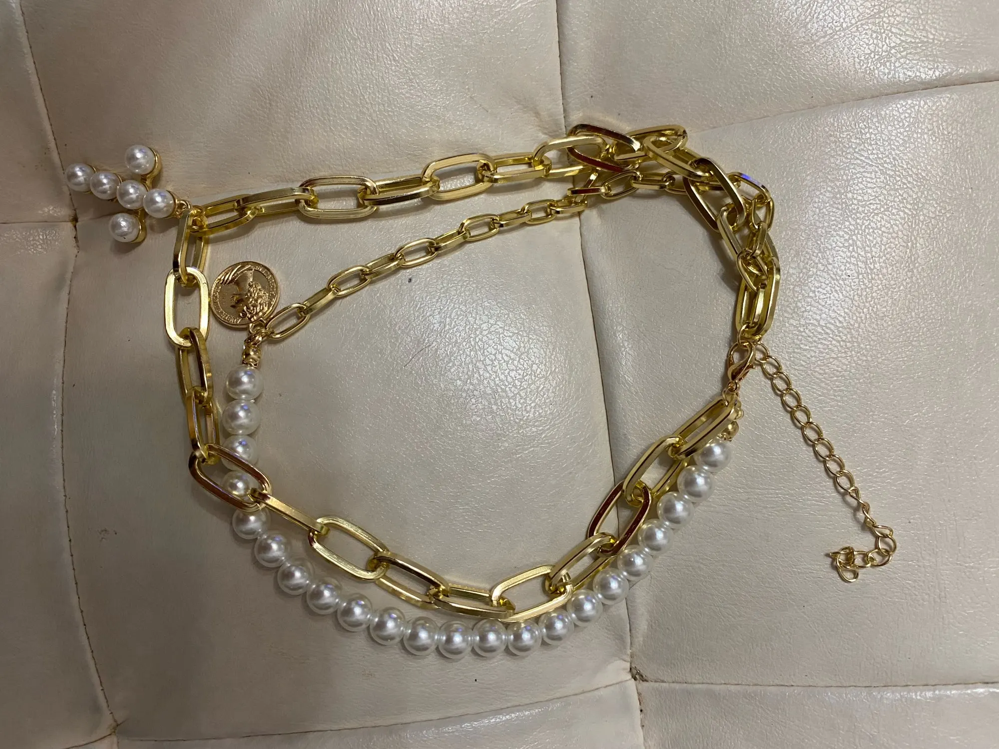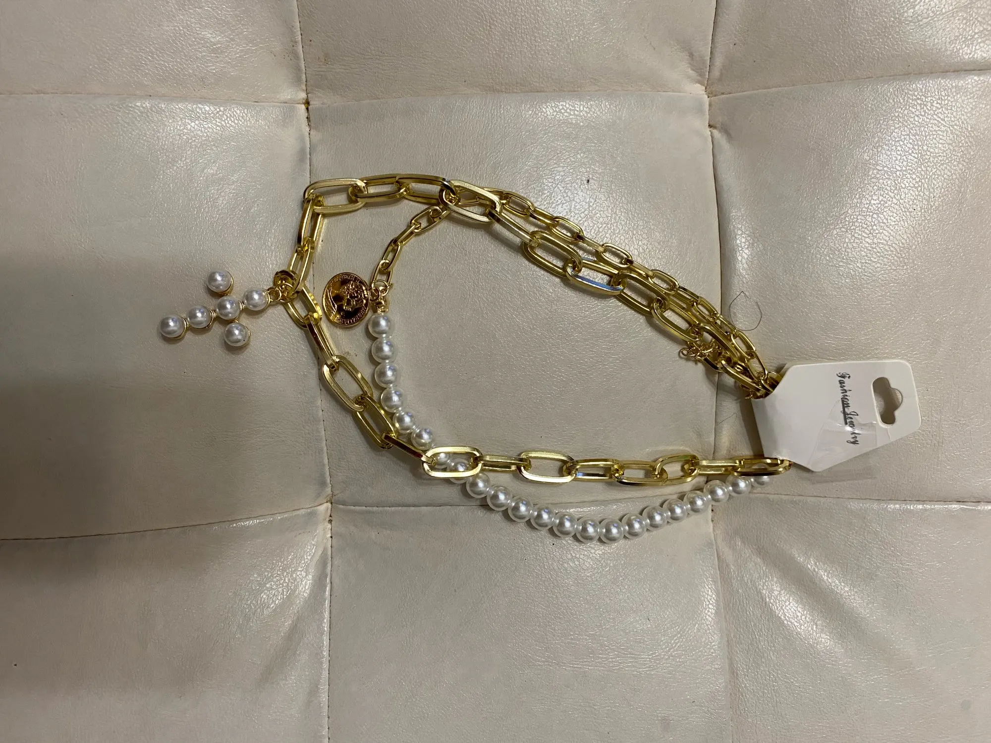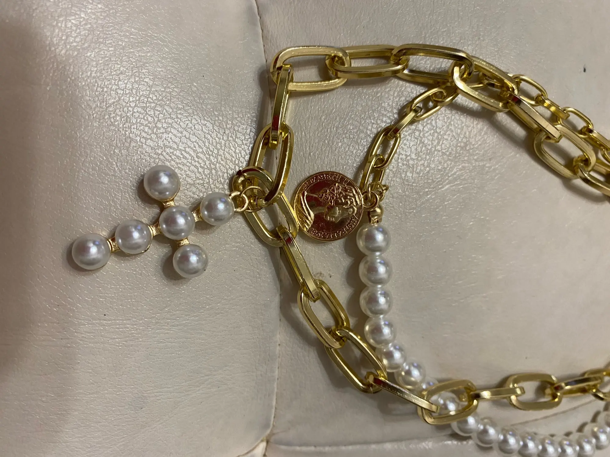 Collier croix chaîne de perles