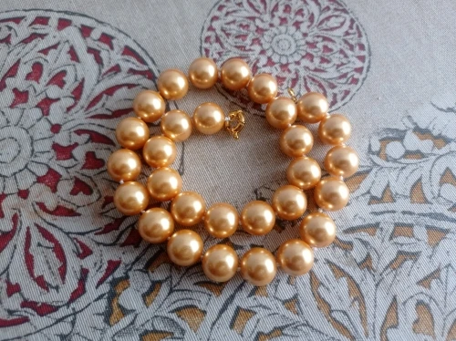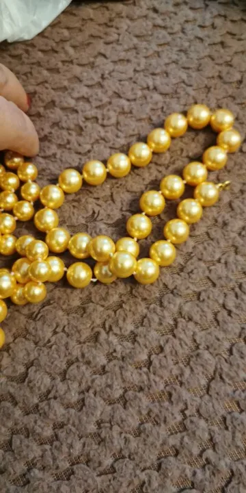 Collier de perles dorées en coquillage du sud pour femme et fille, 14mm, 18 pouces, à la mode, cadeau de noël ou de mariage, vente en gros