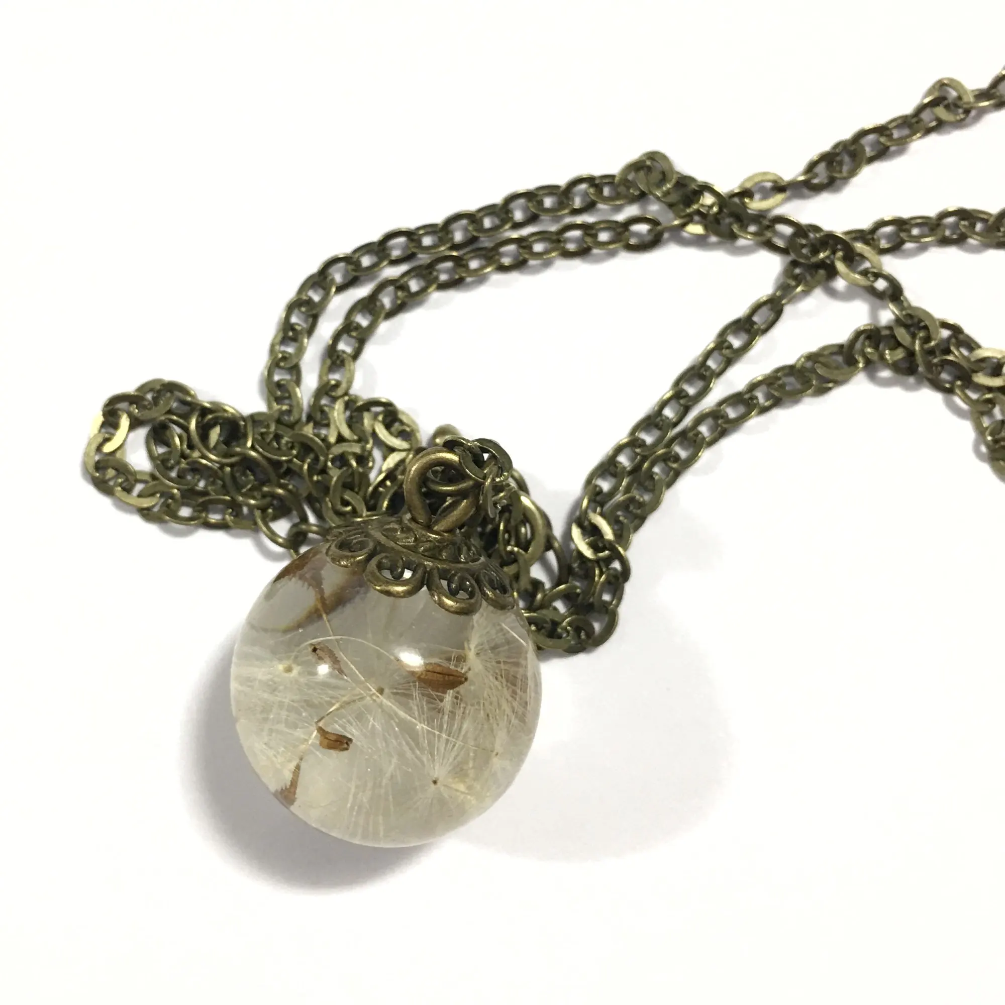 Collier de souhait de pissenlit, véritable graine de pissenlit en cristal clair, pendentif boule, collier fait à la main, cadeau pour elle