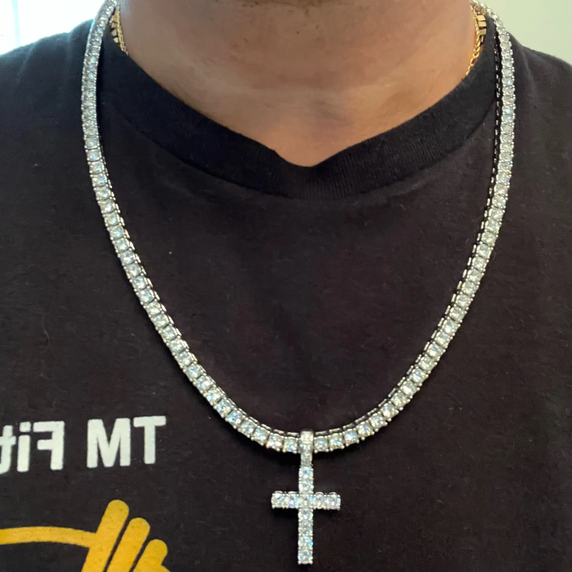Collier Hip Hop avec pendentif en croix pour hommes et femmes, chaîne de Tennis en Zircon de 4mm, colliers scintillants glacés, bijoux, cadeau à la mode