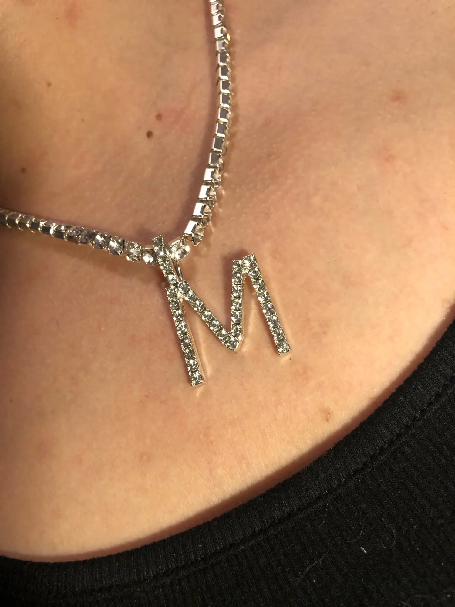Collier Initial de lettres pour femmes couleur argent, déclaration ras du cou de chaîne Tennis, collier de 26 lettres de l'alphabet en cristal scintillant, bijoux