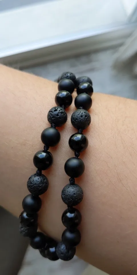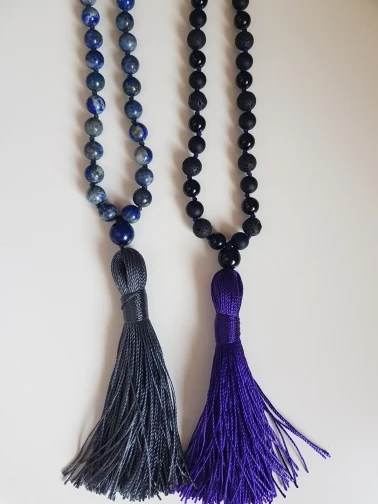 Collier Mala noir en Onyx et pierre de lave, 108 perles, bijoux de Yoga, perles de prière