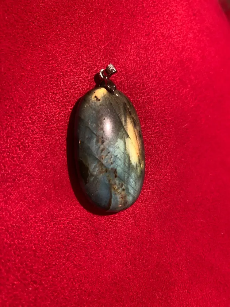 Collier pendentif en Labradorite, jaune et bleu naturel, bijou pendentif pour femmes et hommes, perles ovales, pierre de lune en cristal argenté, AAAAA