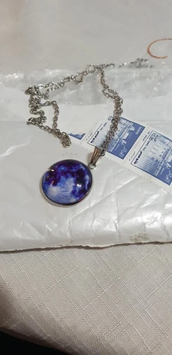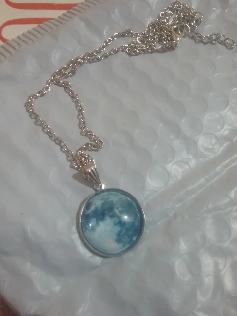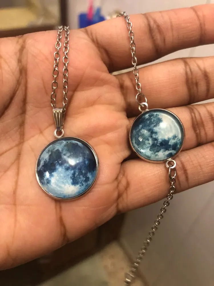 Collier pendentif en verre lune bleue dans la lune sombre, galaxie, chaîne lumineuse pour pull, cadeaux spéciaux pour femmes