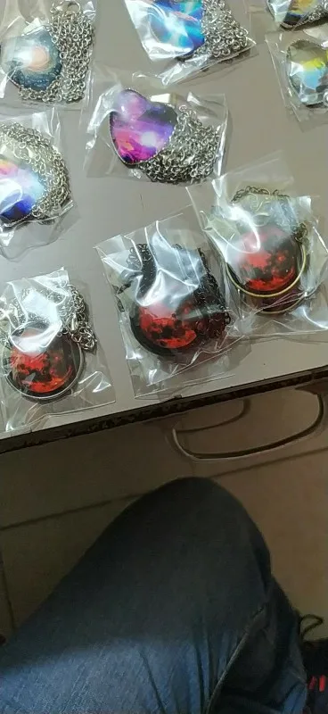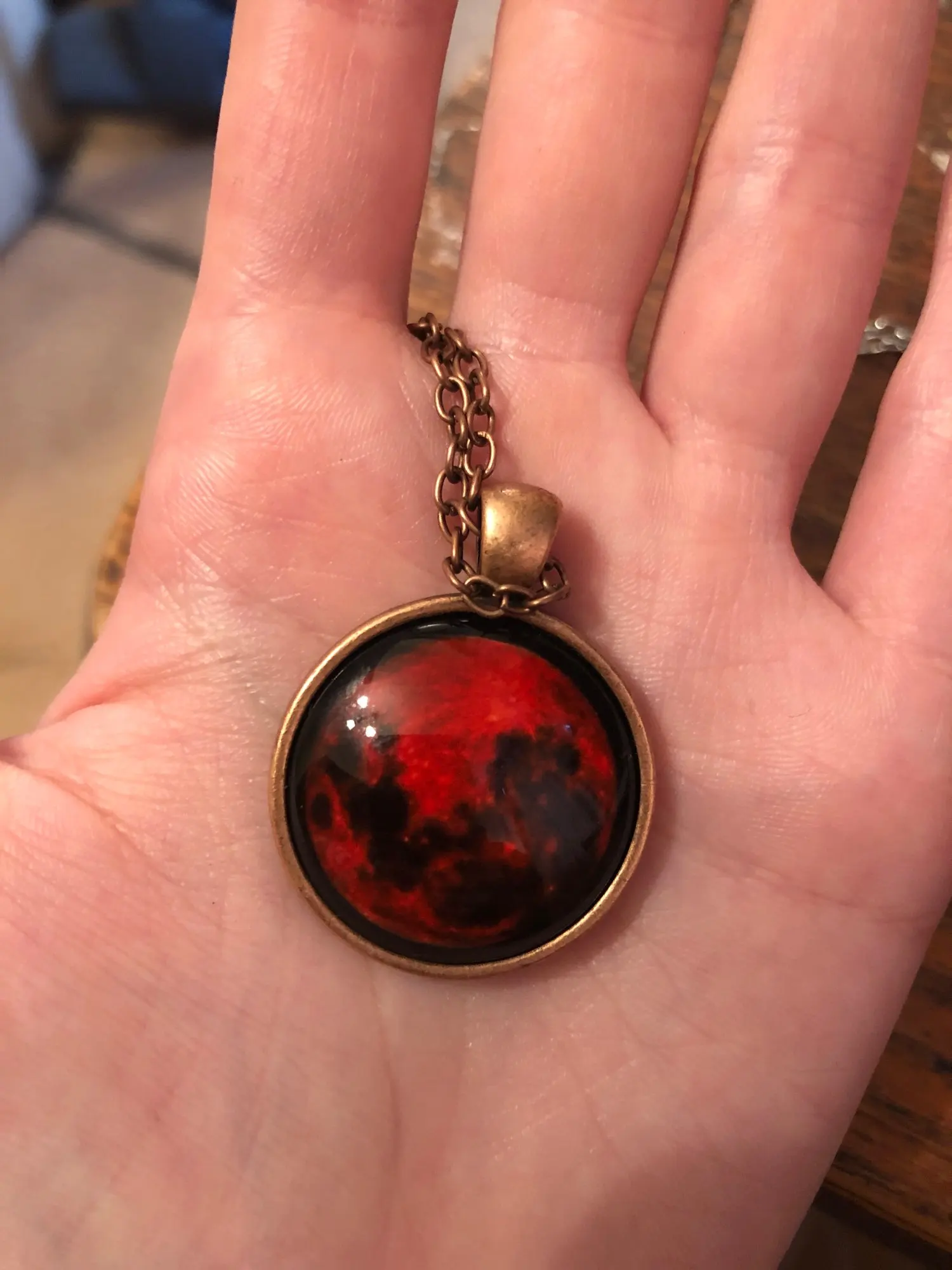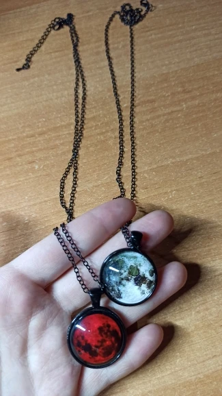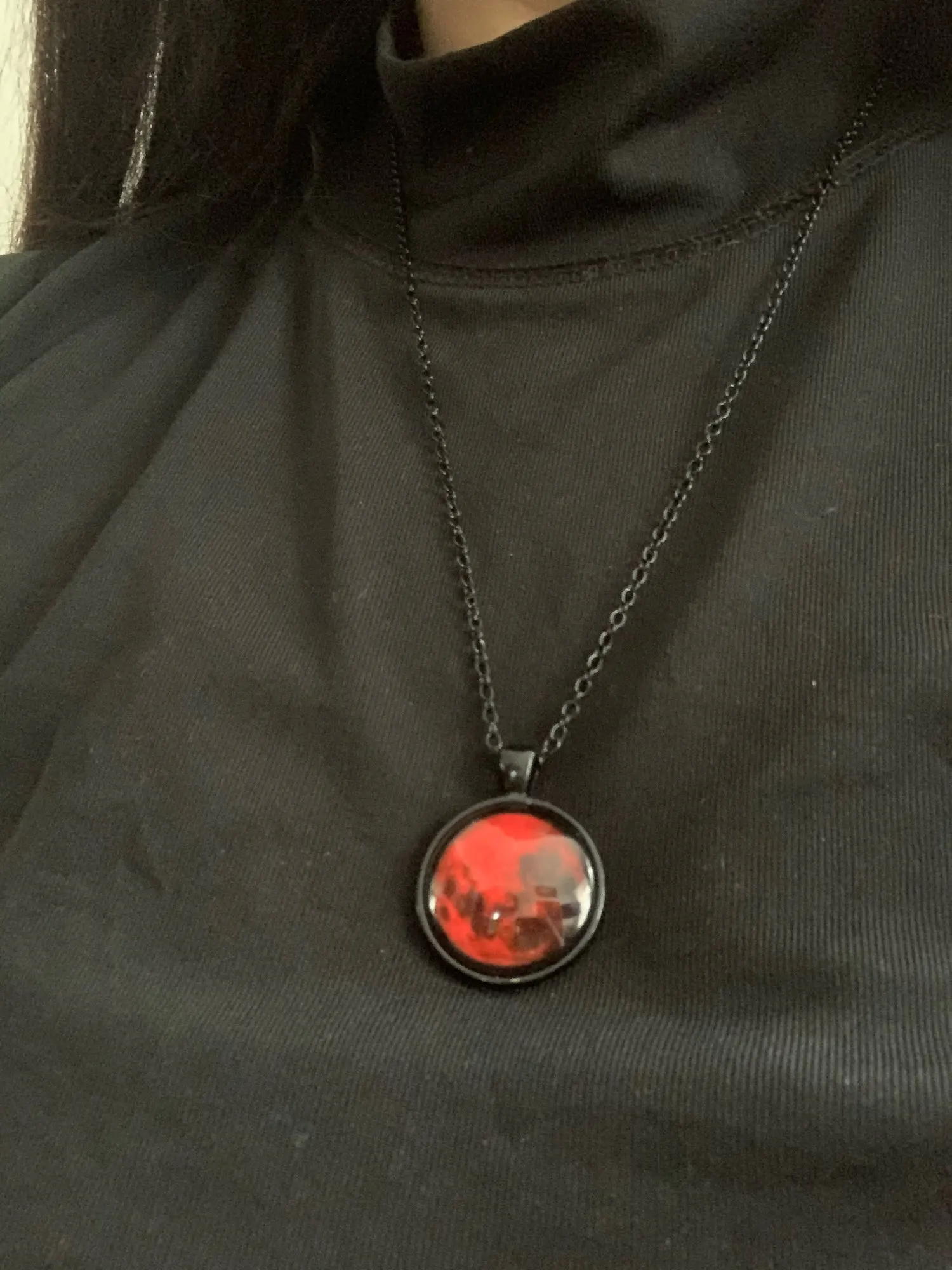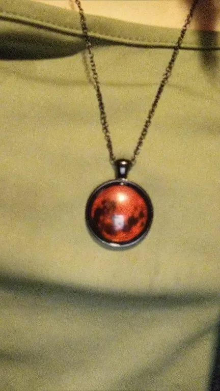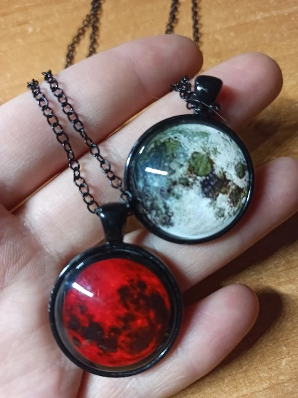 Collier pendentif lune de sang, bijoux en verre, nébuleuse astrologique, galaxie gothique, espace extra-atmosphérique, cabochon, verre, HZ1, nouvelle collection 2017