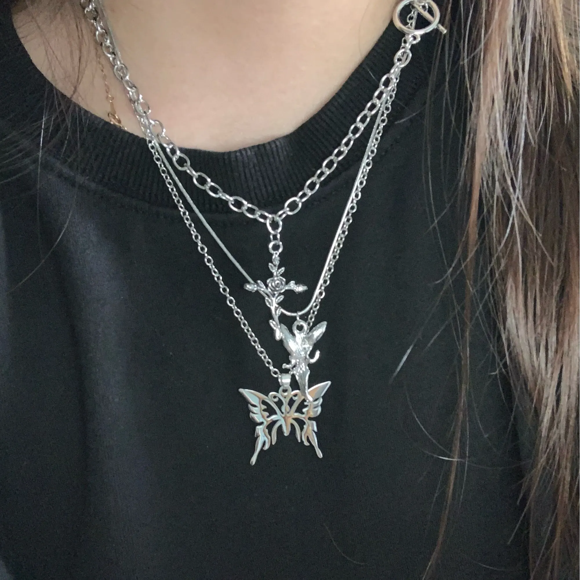 Collier ras du cou 3 couches pour femmes, style Hip Hop, couleur argent, Cool, croix, Simple, pendentif papillon ange, bijoux, 2022